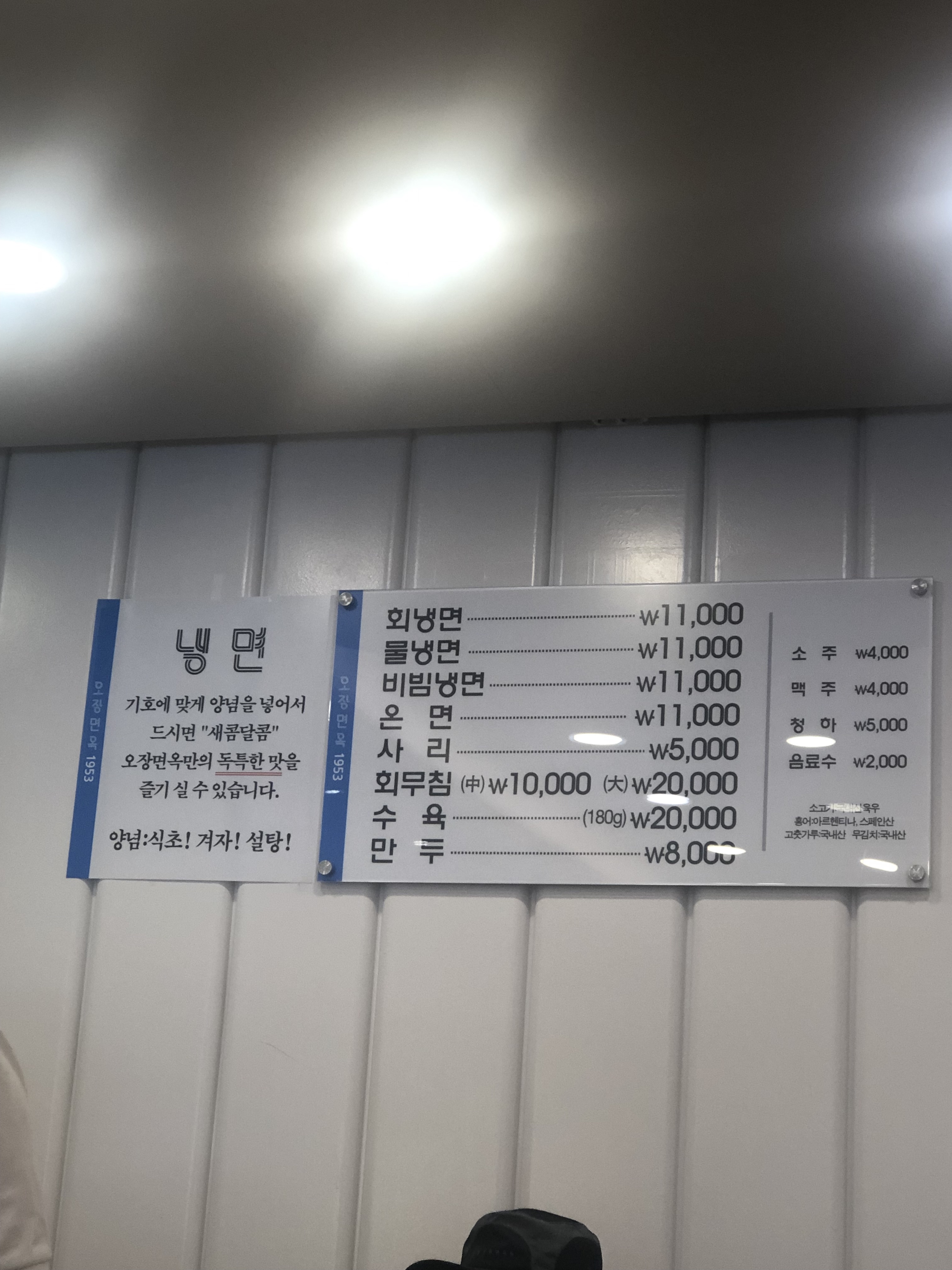 가격 1만1천원. (2019년 5월 현재) 요새 평양냉면 가격 오르고 콩국수 가격 미친듯이 오르는 거 생각해보면 이 가격은 아직은 준수하다.