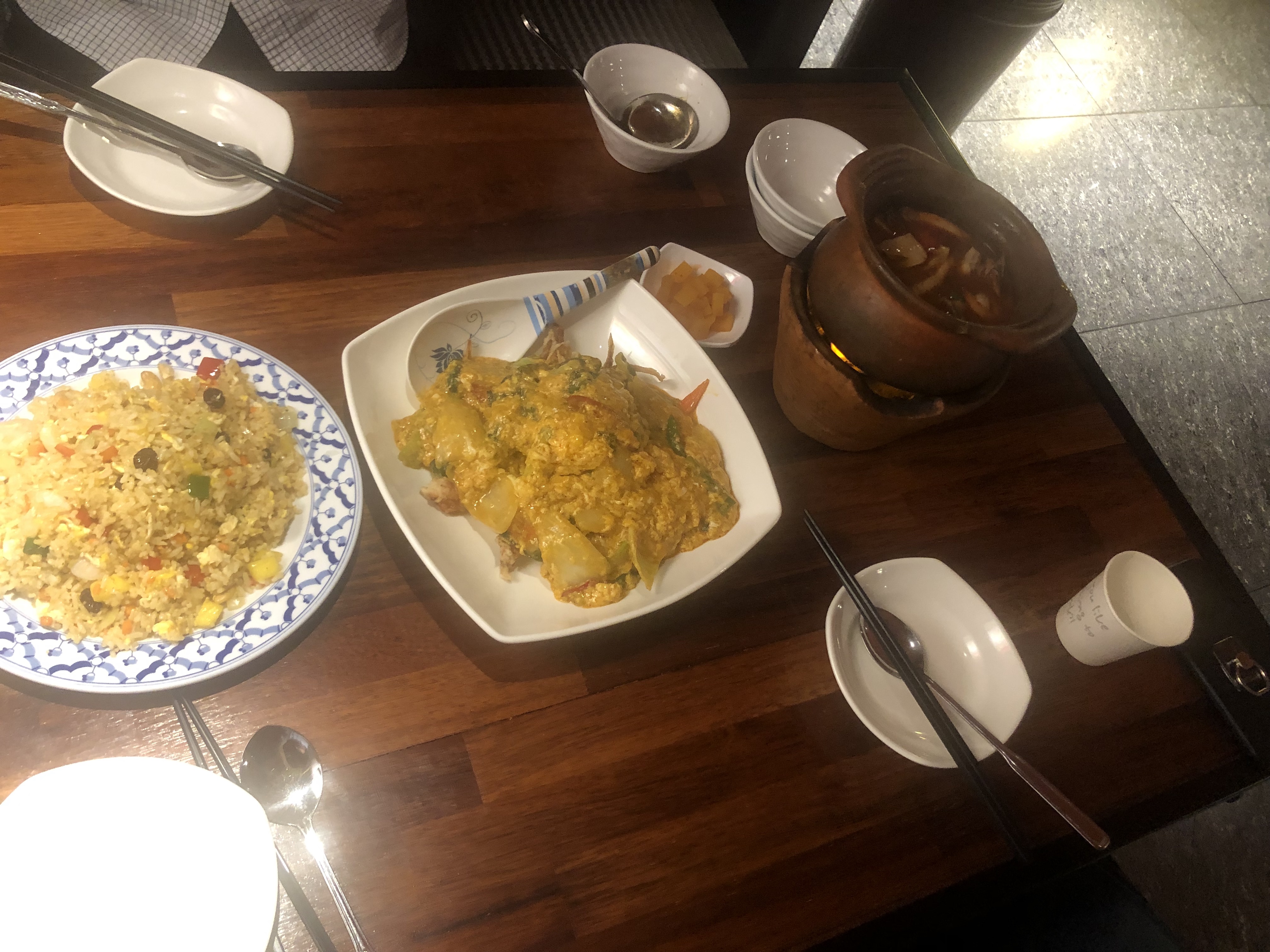 이번에도 주문한 것은 파인애플볶음밥, 뿌팟풍커리, 그리고 일행이 주문한 시고매콤한 뚬양꿍.