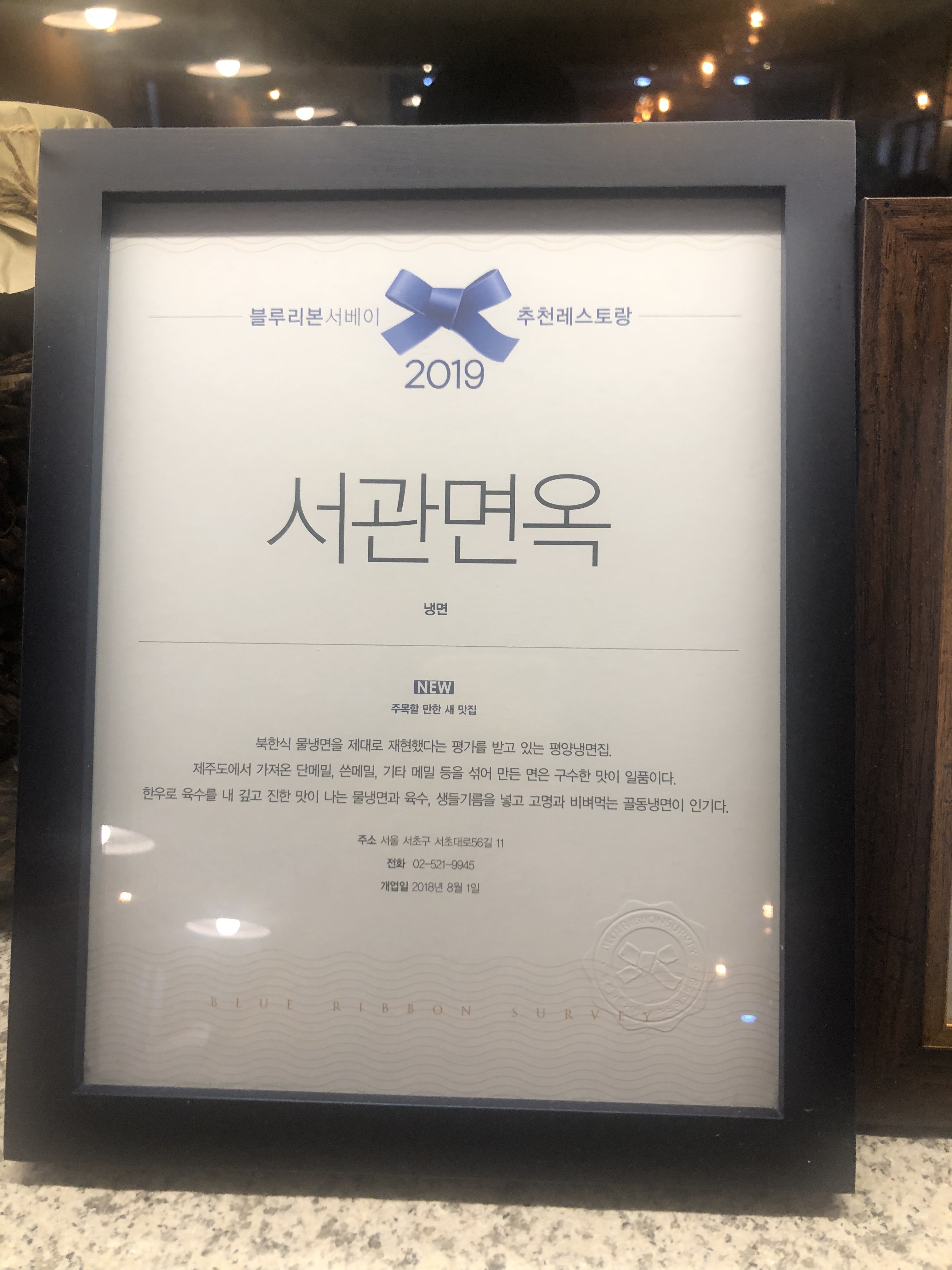 교대역 1번출구에서 가까운 서관면옥을 가봤다. 계산할 때 보니까 2019 블루리본 식당으로 선정되어 있는 집이라서 다소 뜻밖이라는 생각이 드는 식당이었다.