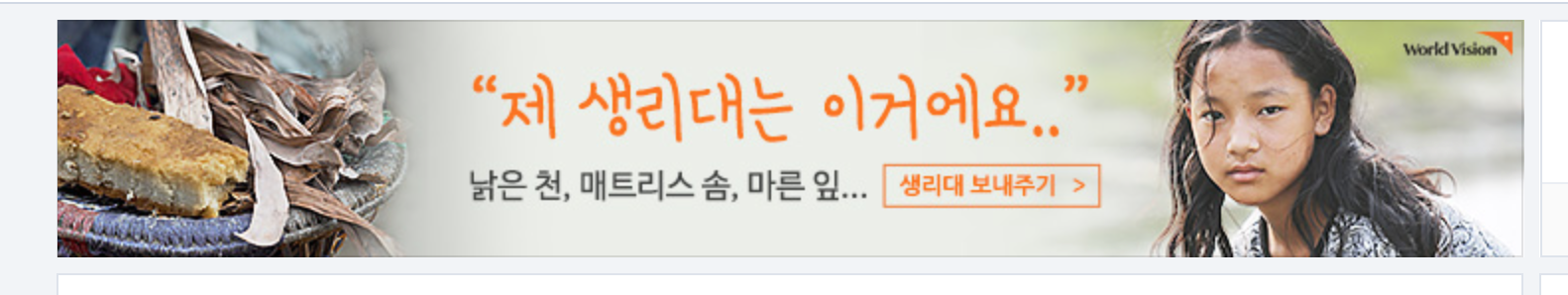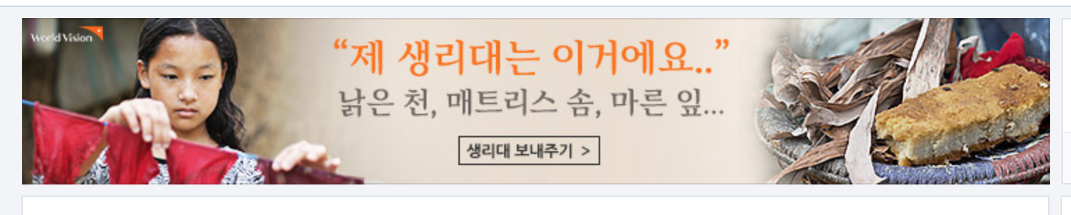 요즘 인터넷을 보다보면 자선단체나 사회단체에서 불쌍한 아프리카 어린이가 엉엉 울면서 배를 내놓고 있는 사진이 있는가 하면 중고생으로 보이는 여학생이 '생리대가 없어서' 라는 광고 문구와 함께 사진으로 놓여져 있는 경우를 많이 보게 된다.