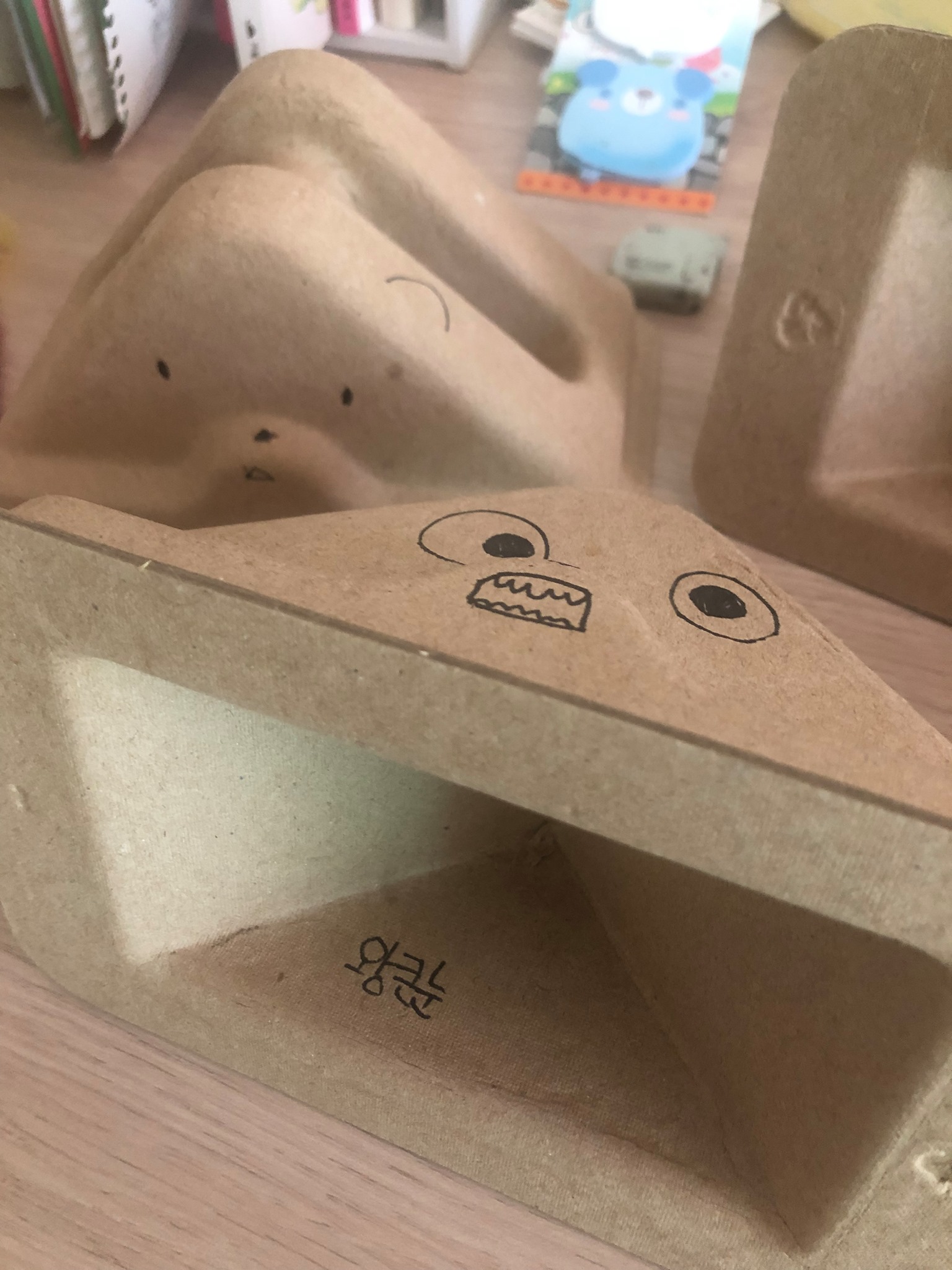 그런데 우리 집 초등학생 꼬마는 이렇게 캐릭터로 부활시켰다. 마치 토이스토리4 포키를 만드는 과정처럼 말이다.