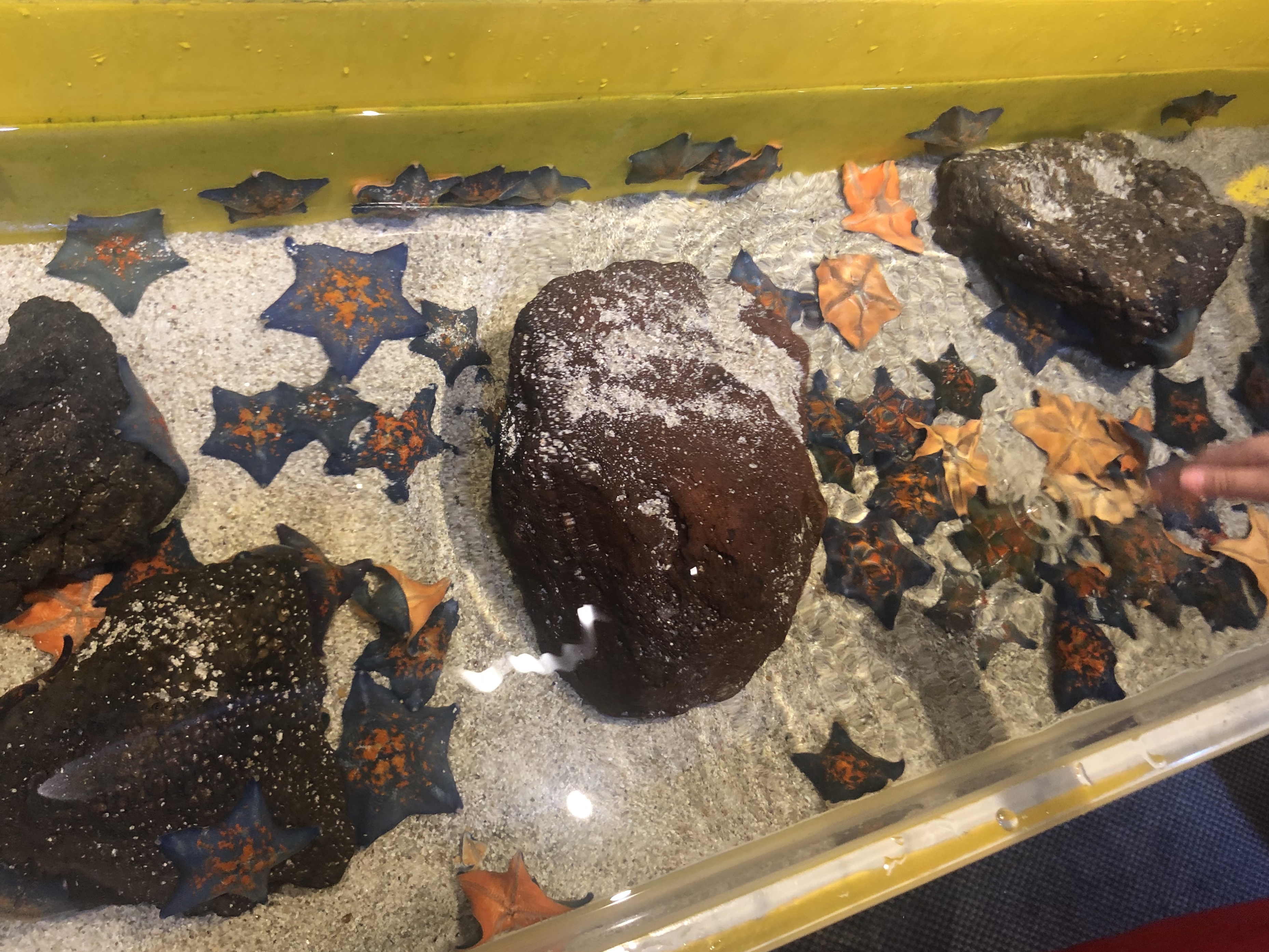 불가사리랑 아이들 만지게 해 놓은 곳이에요 개불이 있었는데 없어졌네요.. 멍게랑. 소라, 조개 등은 많이 있어요.