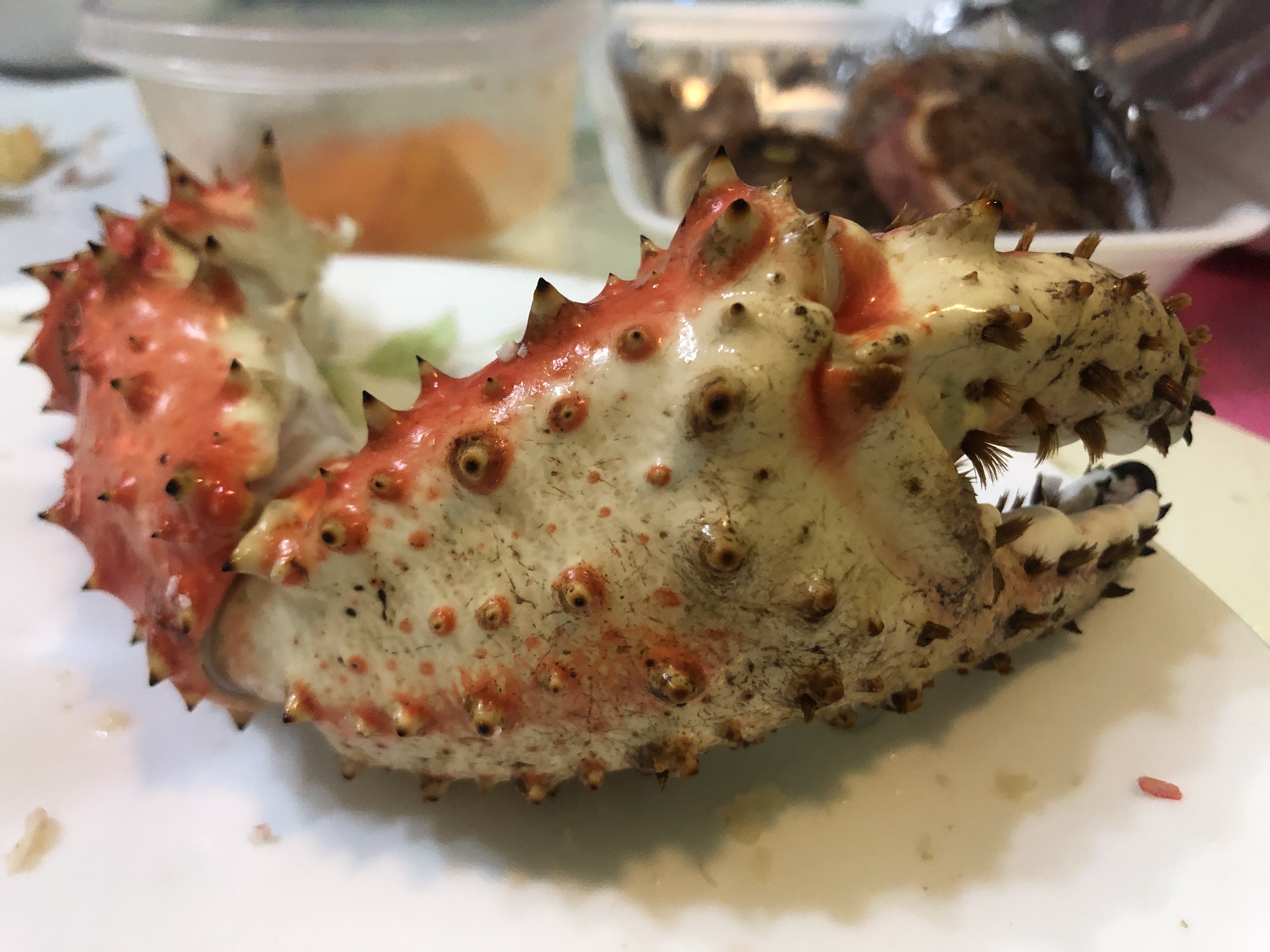 이 집이 가격이 상대적으로 저렴한건 활어가 아닌 선어 (조만간 죽을 ㅎㅎㅎ 운명이거나 몇시간 이내에 죽은 크랩들) 크랩들을 팔기 때문이다.내가 산 것도 아침까지 살아있던 러시아 킹크랩이었나본데 바로 쪄서 오후에 포장해서 가져왔다.
