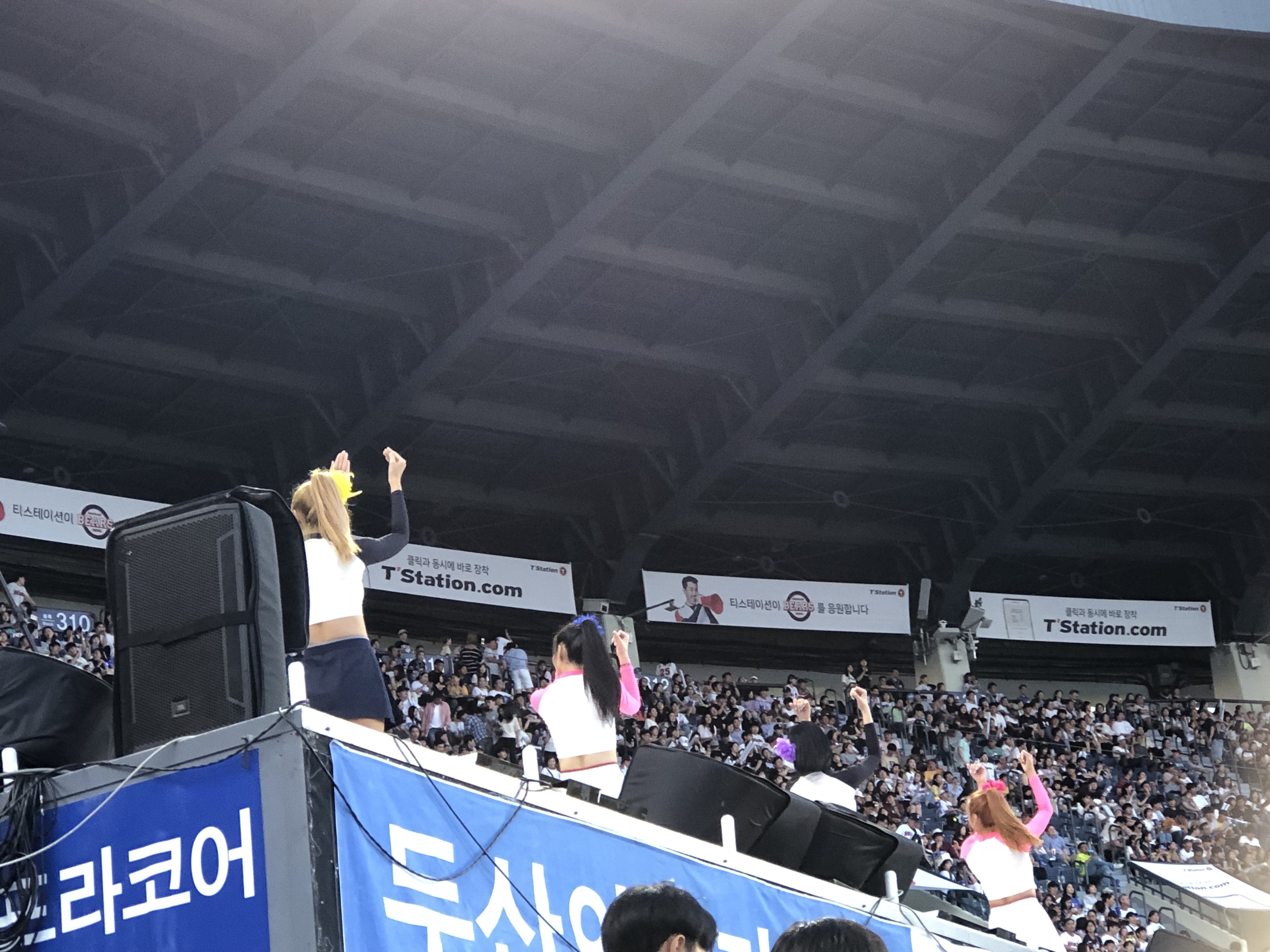그리고 치어리더석은 ㅎㅎㅎㅎ 그렇게 시끄럽지는 않아요 응원단 스피커가 위에 있으니까.. 줌으로 찍은 시야는 이렇습니다. 뒤쪽 왼쪽이 되는 셈인데 ...