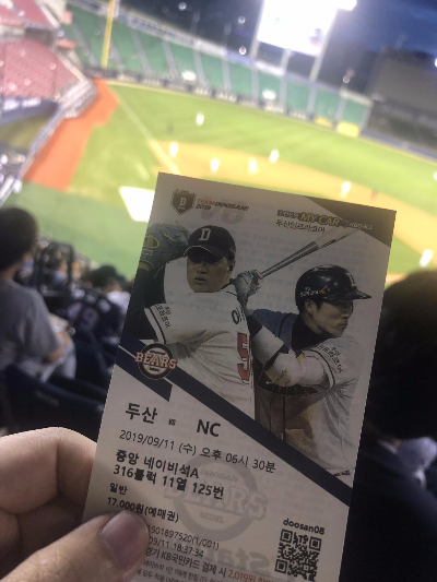 잠실야구장에 한번 더 갔습니다. 두산베어스 경기를 보러가기 위해서죠. 지난번 갔을때는 1루 레드석 104구역이었는데요. 이에 대한 후기는 이미 적은 바 있습니다. 맨 아래 참고하시고요. 그치만 이번에는 316블럭, 즉 중아에 있는 좌석으로 이동하였습니다. 보다 야구에 집중할 수 있어서죠..