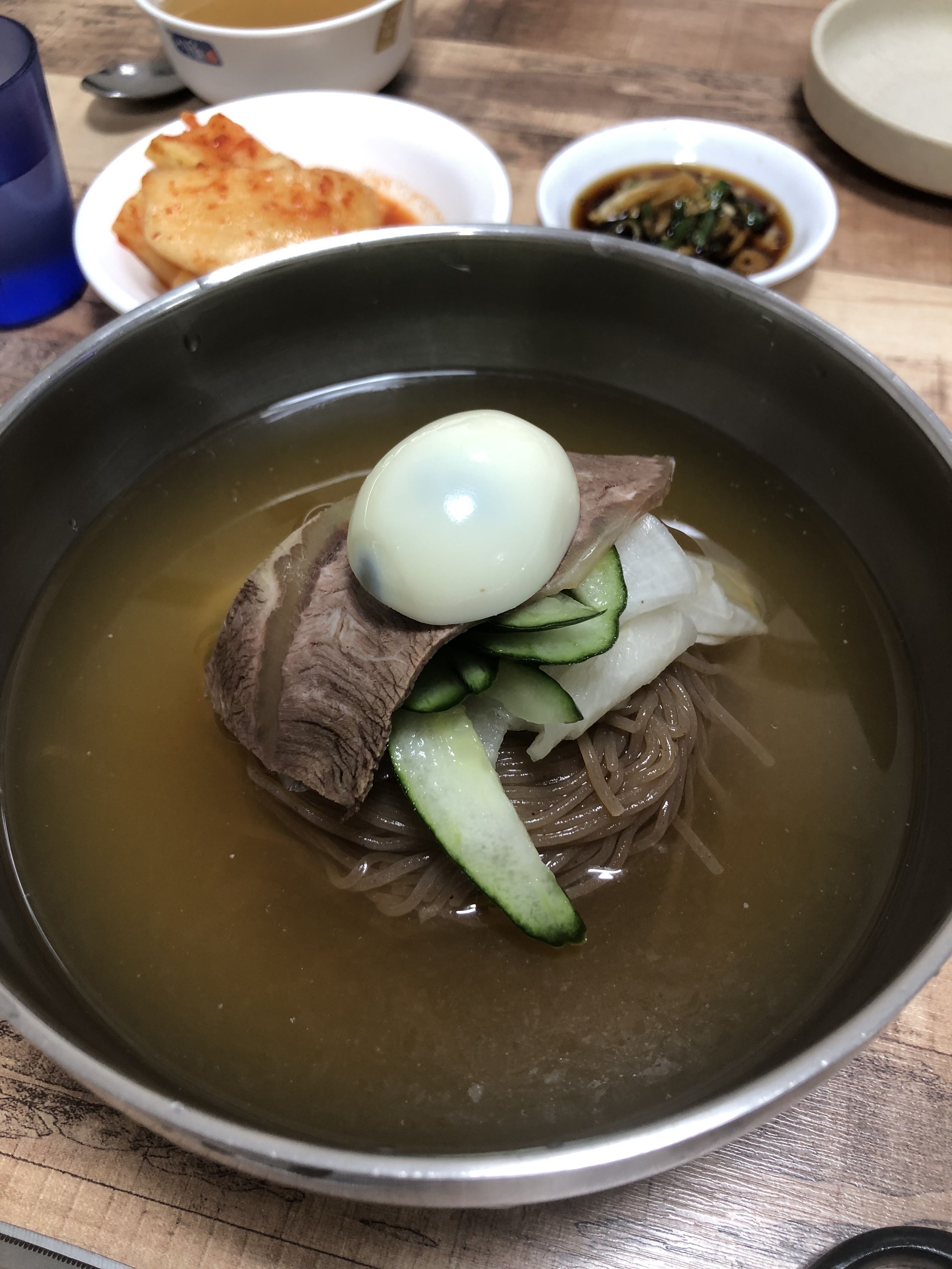물냉면 강추합니다. 면에 바로 메밀 향이 살아있습니다. 뚝뚝 끊기는 메밀면이고, 평양냉면 스타일이라 국물은 심심한데. 그래도 다른 평양냉면 집처럼 완전히 밍밍한 맛이 아니라 그래도 육수간이 어느 정도 되어 있는 집입니다. 아마 그래서 이 집이 인기가 많은 듯 해요. 면의 향기와 육수의 맛이 제대로 느껴집니다.