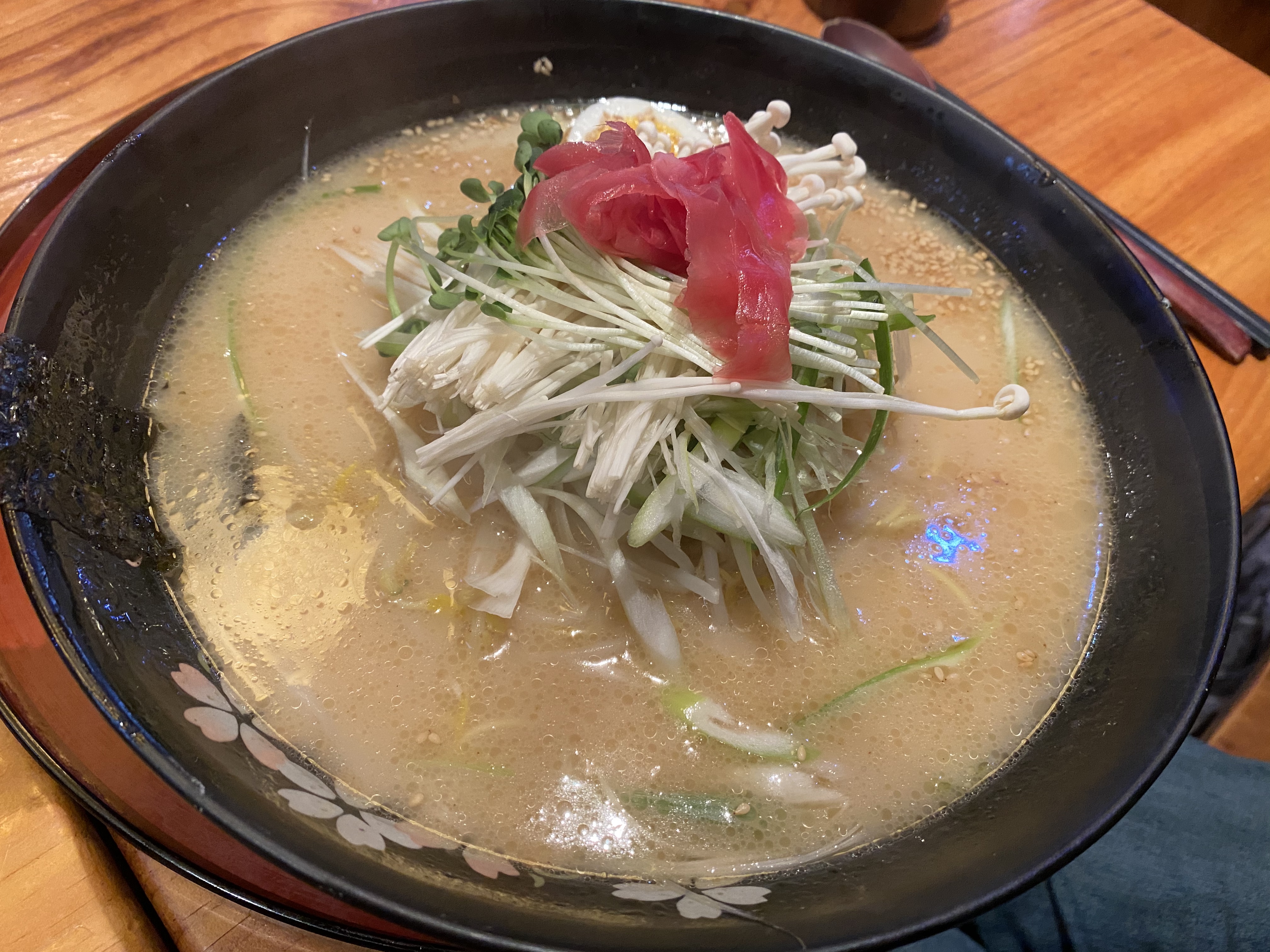 그리고 내가 시킨 돈가츠 라멘, 원래 주문할때는 토핑 식으로 라멘 위에 들어가는 돈카츠인가 했는데, 별도로 나온다. 라멘은 꽤 맛이 단단한 일본 라멘 , 맵지도 짜지도 않다.