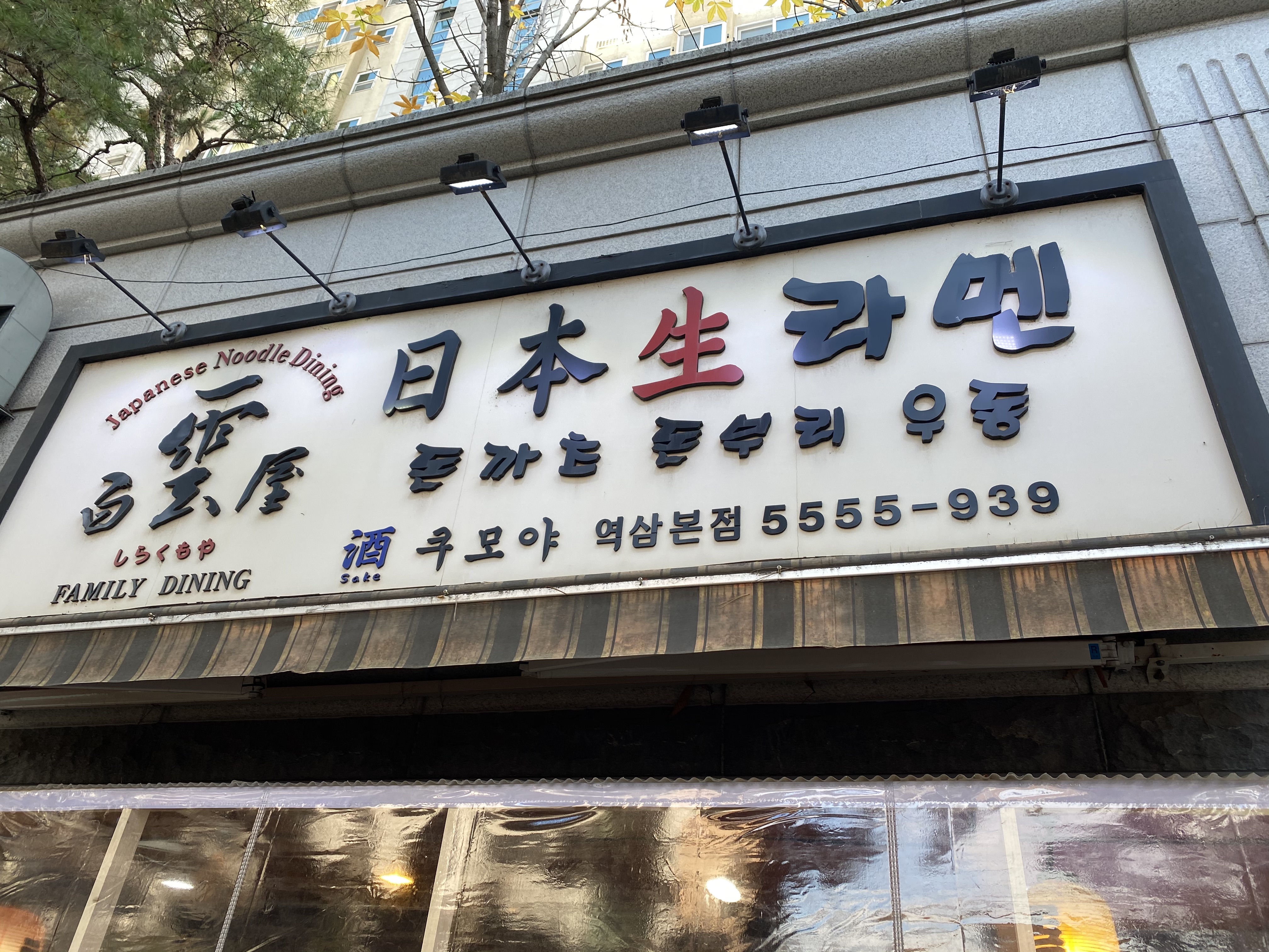 보통 상가나 역주변이 접근성이 좋지만 이 블로그에는 주로 골목 안쪽에 있는 맛집을 소개하고 있다.그런데 최근 역삼동 역삼초교 주변에 있는 일본 라멘, 돈까스 맛집을 발견하게 되었다. 역삼초교에서 길을 건너서 안쪽 길을 따라 300미터 정도 들어오면 아래와 같은 간판으로 일본식 라멘집이 보인다. 정작 상호는 작게 표시되어 있는 쿠모야 본점이다.