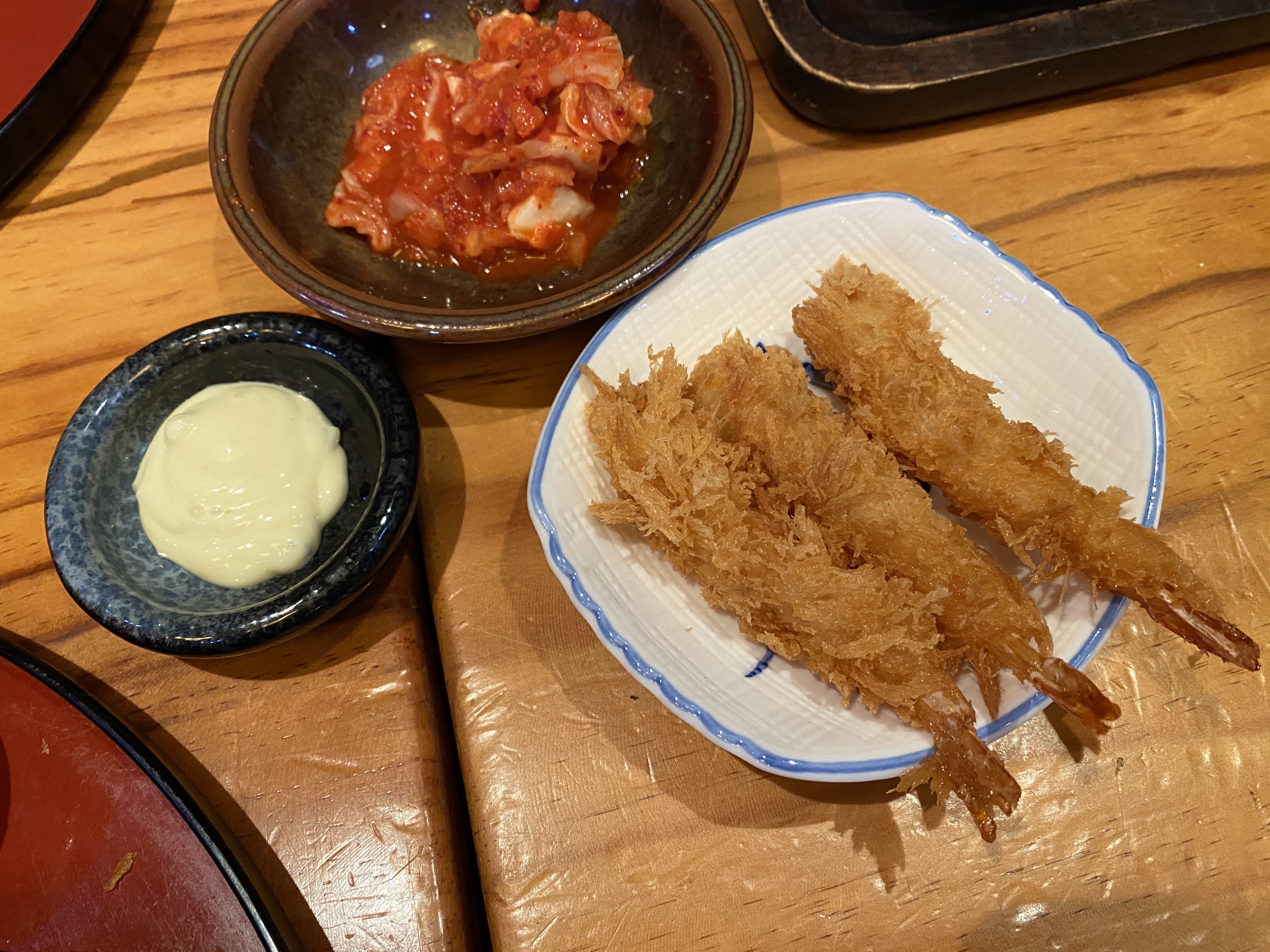 오늘은 사장님이 서비스로 일행에게 한개씩 맛보라며 새우튀김을 주셨다.