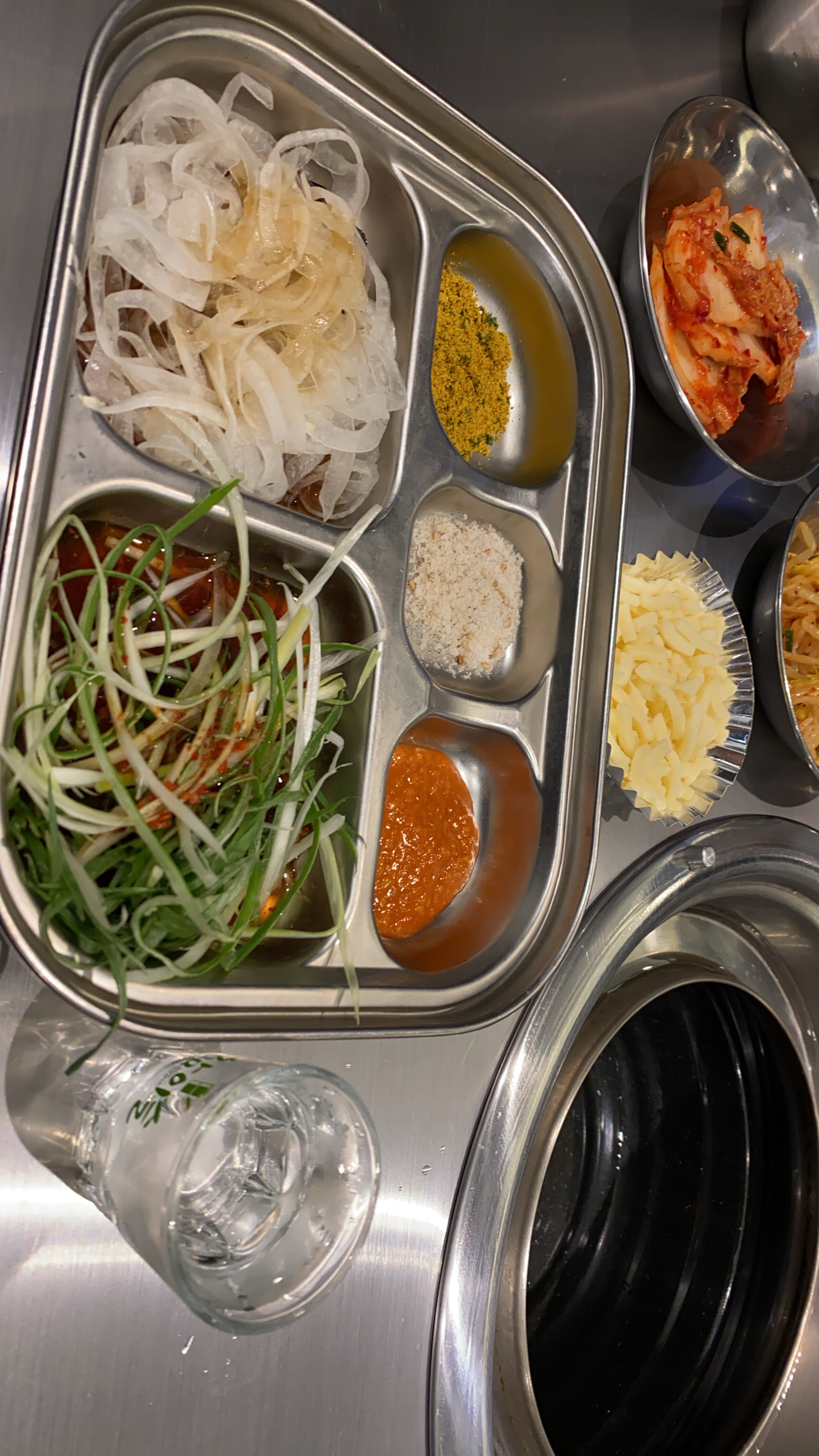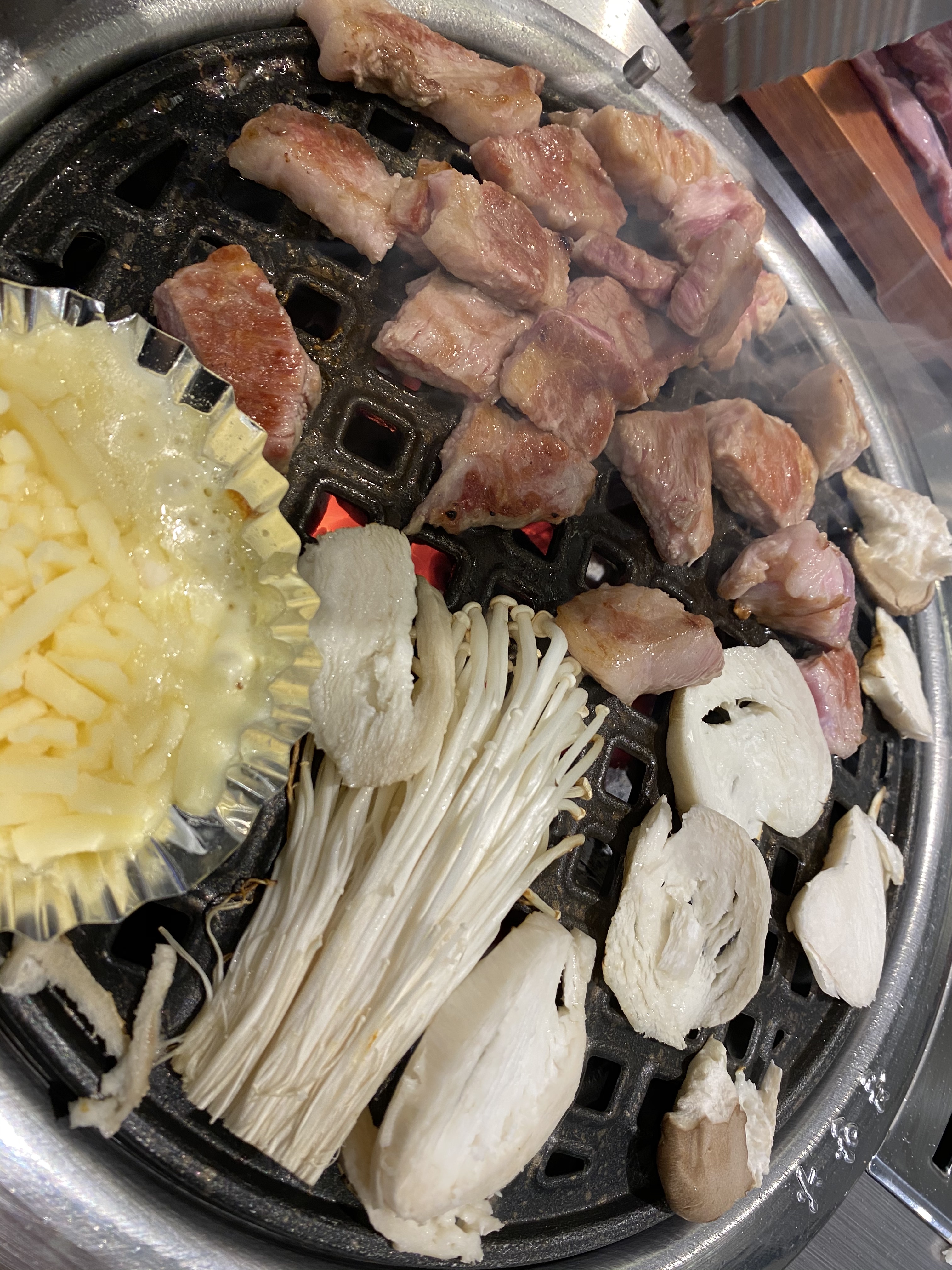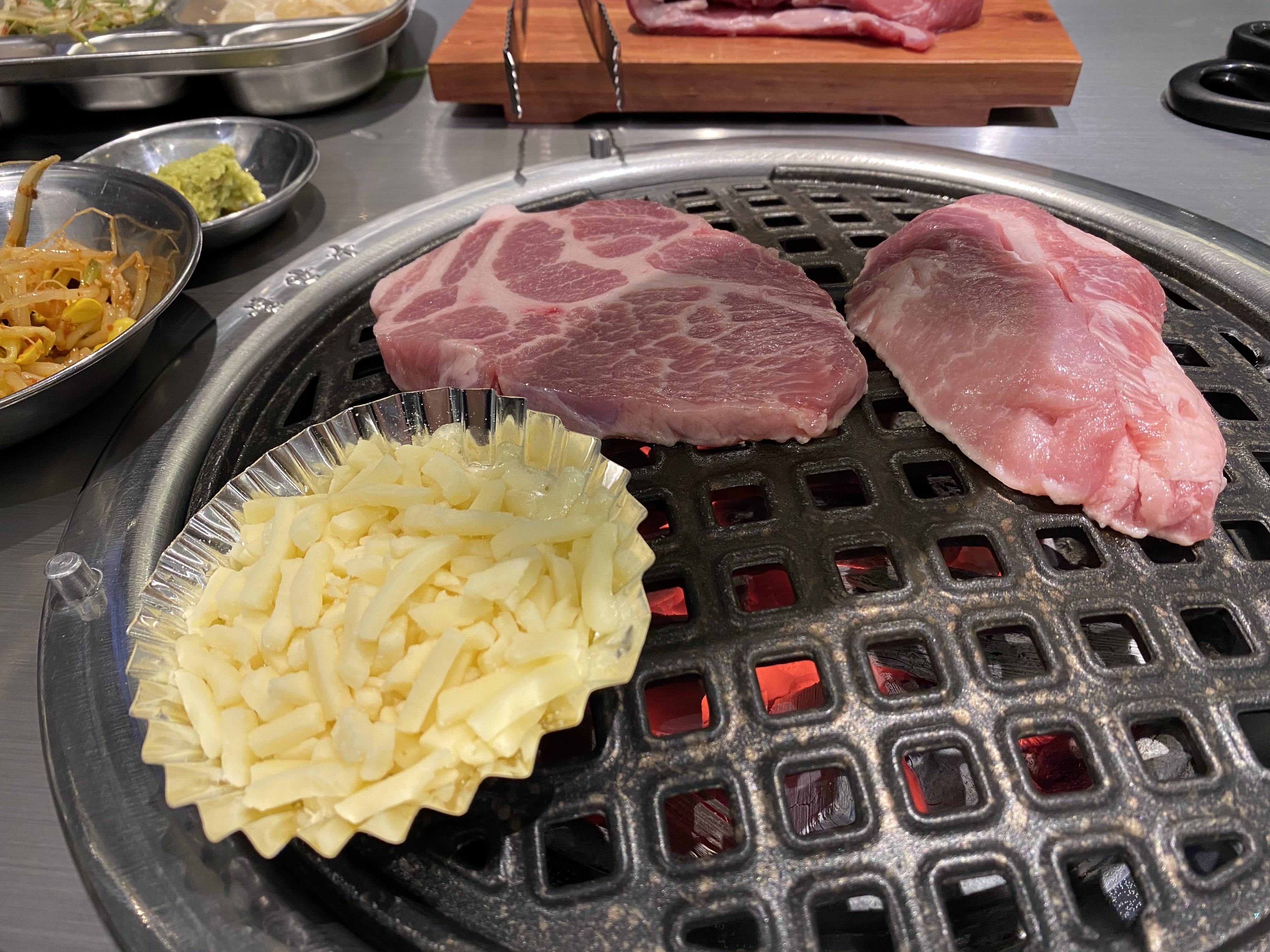 검색해보시면 아시겠지만 간판은 무슨 커피집처럼 ㅎㅎ 그런데 안에도 깖끔하고 밑반찬이 식판에 개별로 나와요. 돼지고기 먹었는데요. 삼겹살, 목살, 갊매기살 모두 13000원. 서빙 알바가 구워주지는 않아요. 이 점은 좀 아쉽지만... 나머진 뭐 그럭저럭 괜찮아요 아, 찌개도 하나 나오는데 게 조각도 들어있고 시원해요. 특이한건 치즈를 찍어 먹게 주고, 카레가루를 줍니다. 와사비도 주고.. 요새 유행하는 찍어먹는건 다 주는군요. ㅎㅎ
