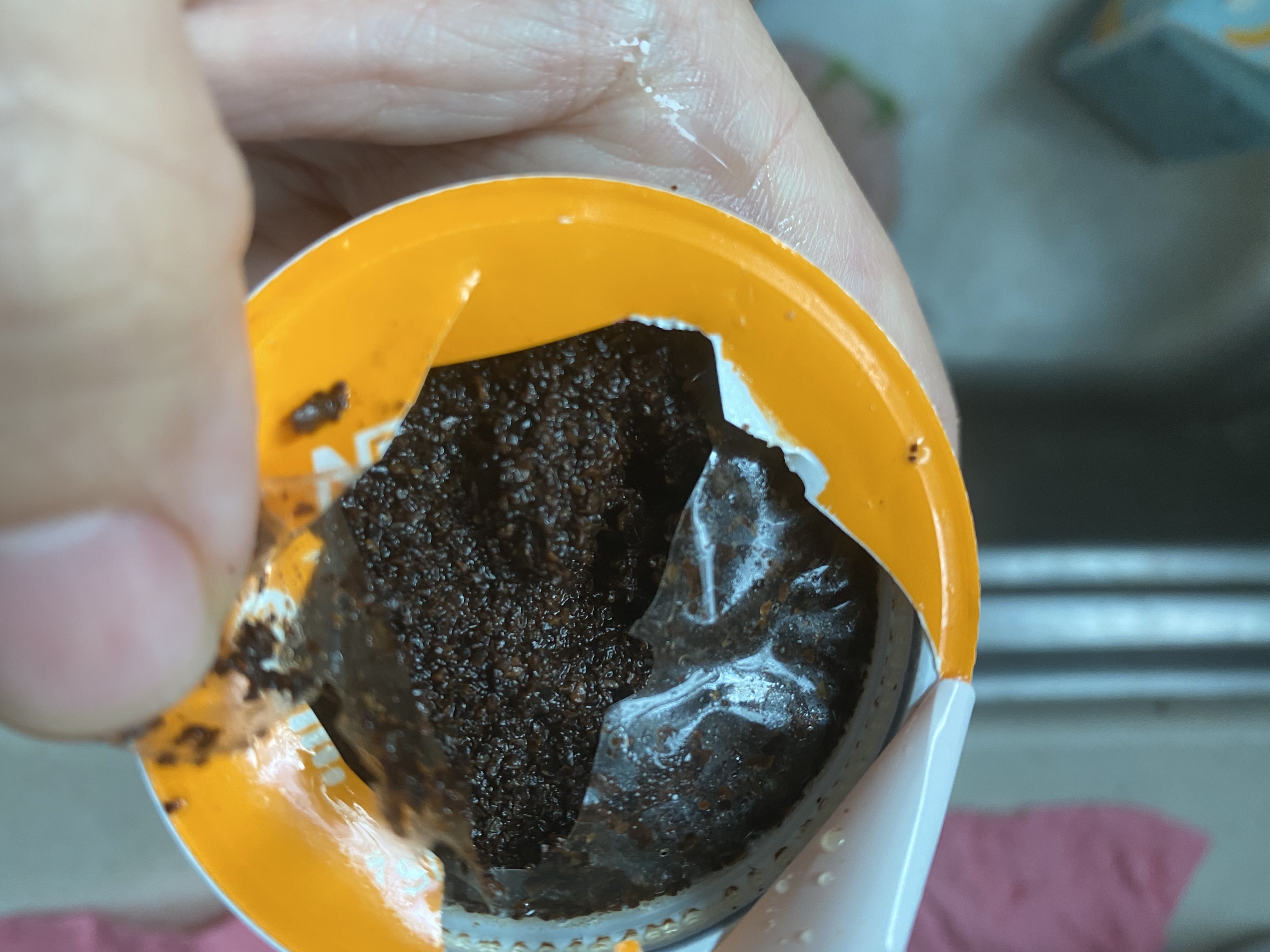 이게 좀 꽉 짜여져서 에스프레소가 추출되면 좋겠다는 바람으로 껍질을 잘라보면 그 안에 다시 압축된 커피 가루가 들어있다. 비닐로. 그게 다다. 그리고 그 비닐까지 찢어보면 그 안에 원두가루가 들어있다. 찢고보면 허무한데, 그래도 궁금해서 뜯어보았다. 사실 룽고나 다른 캡슐 마시기도 해봤는데 그냥 아메리카노가 제일 난 것 같과 가성비도 그렇고, 맛의 차이도 아직은 잘 모르겠다. 아무튼 나처럼 궁금하셨던 분들은 이걸로 궁금증이 풀리시길