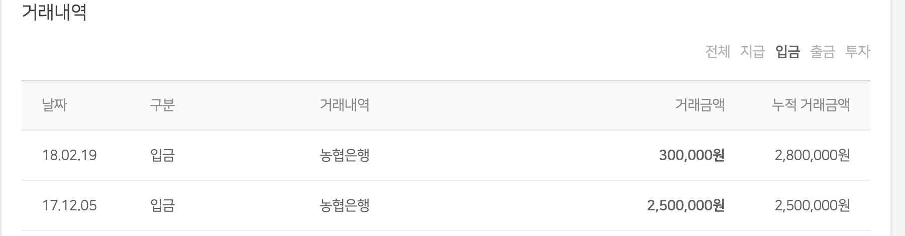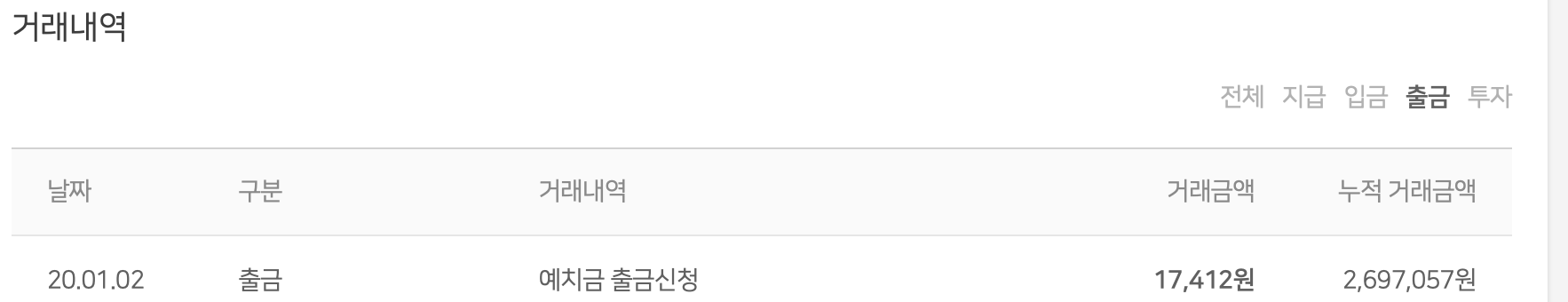 지금까지 출금한 내역 .. 10여만원 차이나는데.이게 아직 투자중이므로.. 회수가 안된 상태이고.. 결국 이익본게 없다...