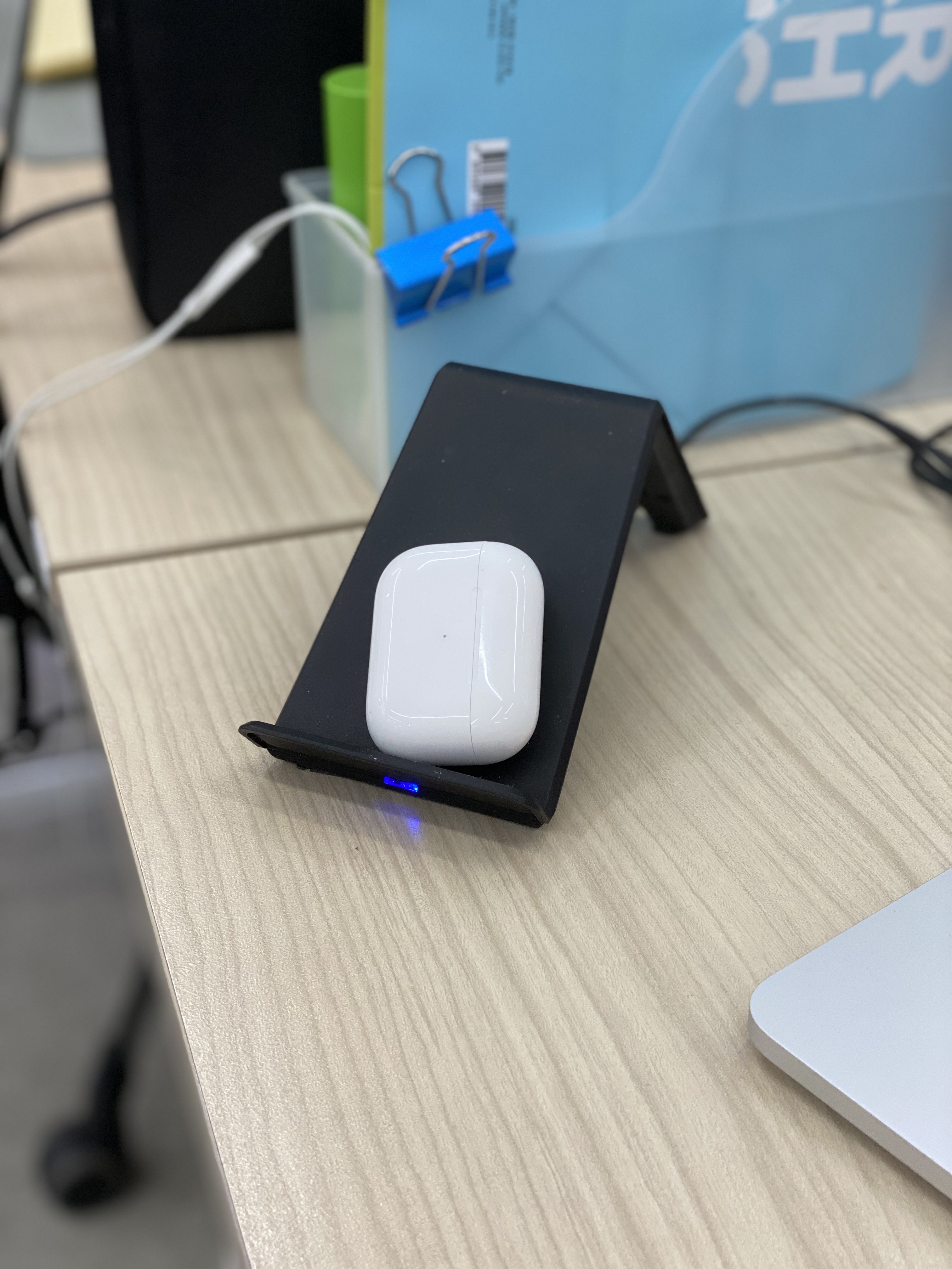 에어팟 프로는 유선 충전 케이블로 기존 usb가 아니구 usb-c 타입이 들어있어요 그래서 정작 usb-c 가 꼽히는 충전플러그나 노트북이 없다면..... 무선충전를 하게 됩니다 .