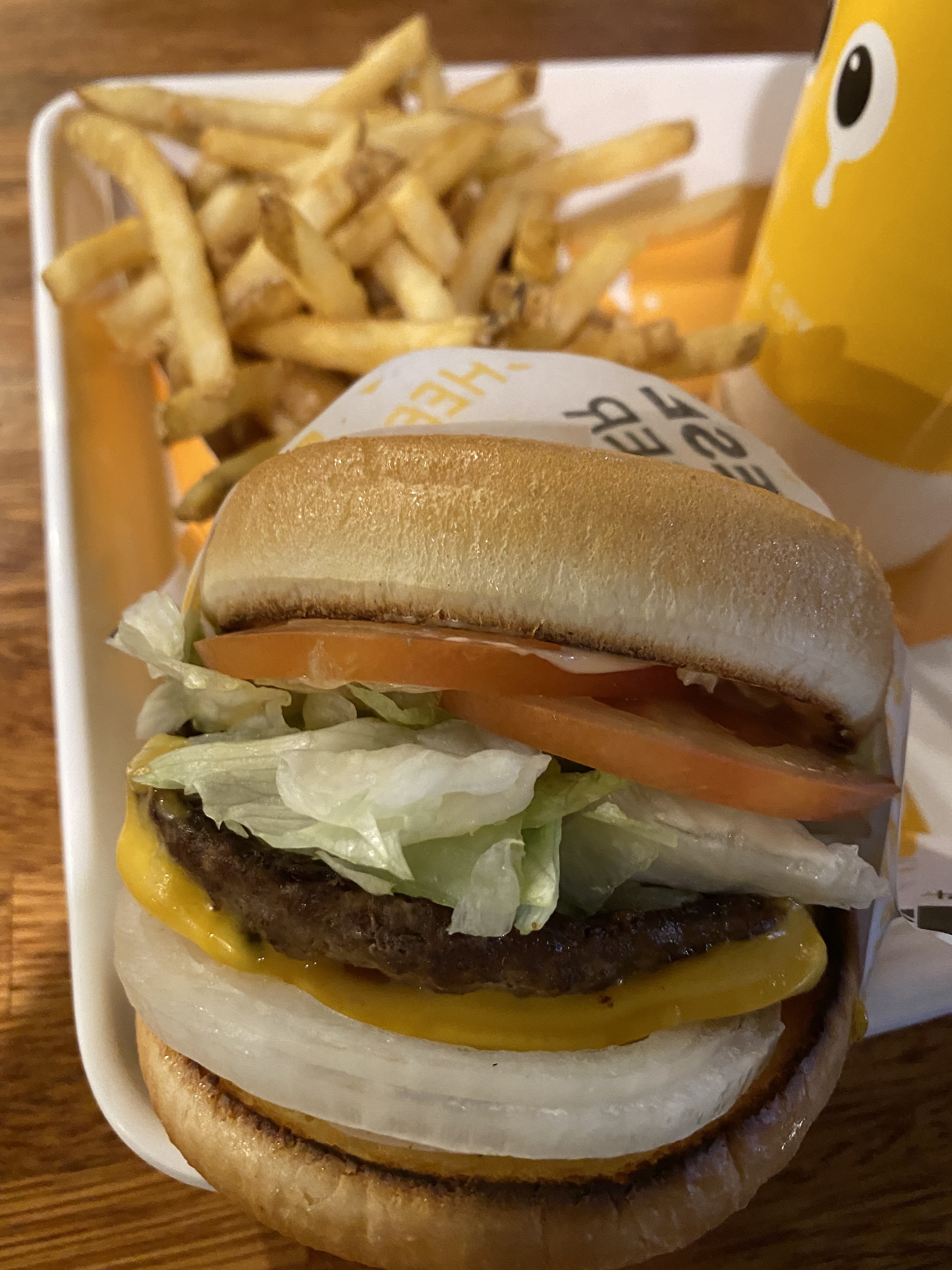 버거 안에 양파는 생양파가 기본이고, 익혀달라면 익혀주는데, 개인적으로는 당연히 생양파다. 사실 이 대목에서 와 이집 진짜다 싶었다. 양파의 향과 패티의 조합이 끝내준다. 당연히 빵은 너무 두껍지도 얇지도 않다. 사이즈는 쉑쉑 버거 사이즈. 맥도날드 대표 메뉴 빅맥이나 버거킹 와퍼보다는 작은 사이즈다. 하지만 이 사이즈가 딱 막는 것 같다. 왜냐면 패티, 치즈, 양파, 토마토 등이 제대로 두툼하게 들어있기 때문이다.