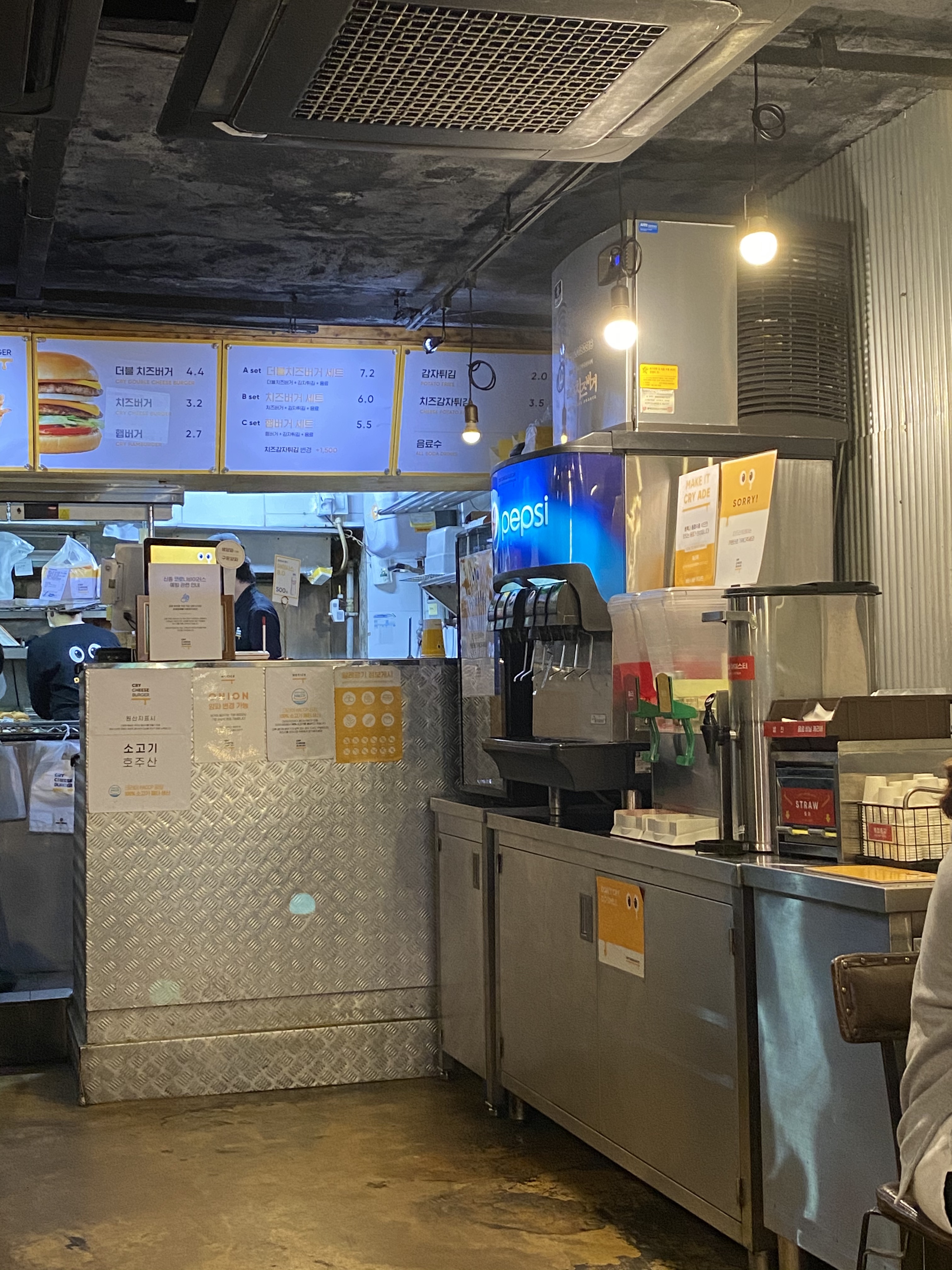 심지어 패티 고기는 호주산!!!! 미국산이 아니다. 그런데 이 가격이?????? 음료 무제한 (다만 유일한 흠은 코카콜라가 아닌 펩시) 그런데 콜라만 있는게 아니라 다른 음료들도 많다. 자체 제작하는 아이스음료도 있었다.