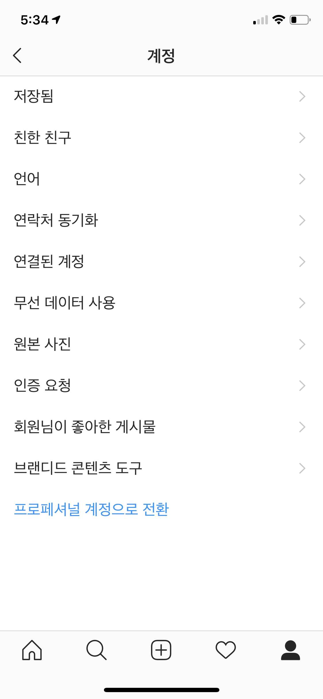 설정 -으로 들어가서 ‘내 활동’ 여기 있을 거라 생각했는데 절대 아니고 ‘설정 —- 계정’ 하위에 있다. 내 활동에 있어야 하는 거 아니냐?