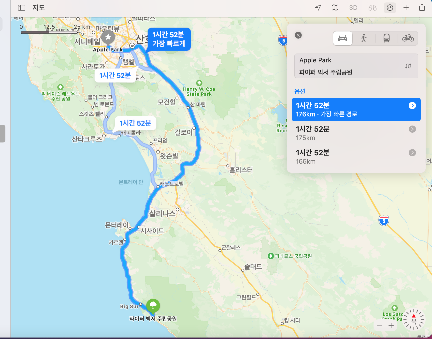 미국 해안 주립공원을 빅서라는 곳을 빅서 업데이트 후 꼭 맥 os에 있는 애플 지도로 꼭 살펴보기 바란다. 왜냐하면 빅서에서 지도가 많이 달라졌으니 말이다. ㅎㅎㅎㅎ 뭐 한국에선 별로 안 쓰게 되는 지도인지라...
