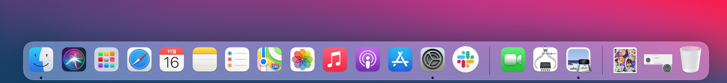 그리고 하단 독 dock 부분의 아이콘등도 ios 기반 앱들처럼 네모난 형태로 다 변경되었다. 애플이 만든것만 그렇고.. 다른 회사들이 만든건 기존 가이드라인에 따라 동그란 형태인것이 눈에 띈다.
