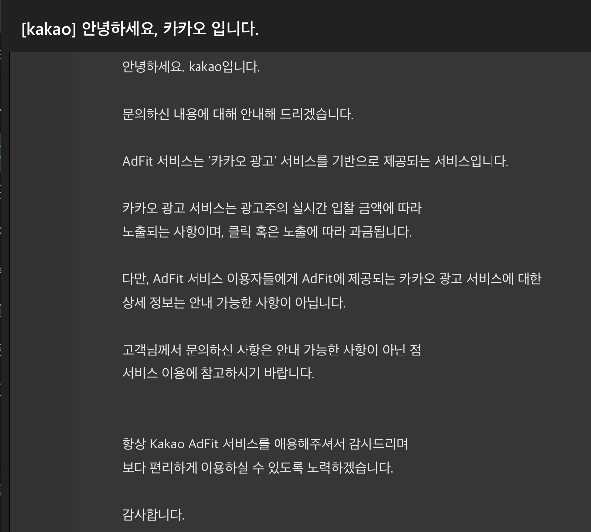 세상에.. 그냥 주는대로 받아라 인가? 비난을 위해서가 아니라 좀 어이가 없어서. 받은 메일을 그대로 공개해 본다. 대체 이런 깜깜이 정산시스템을 믿어야 하나?