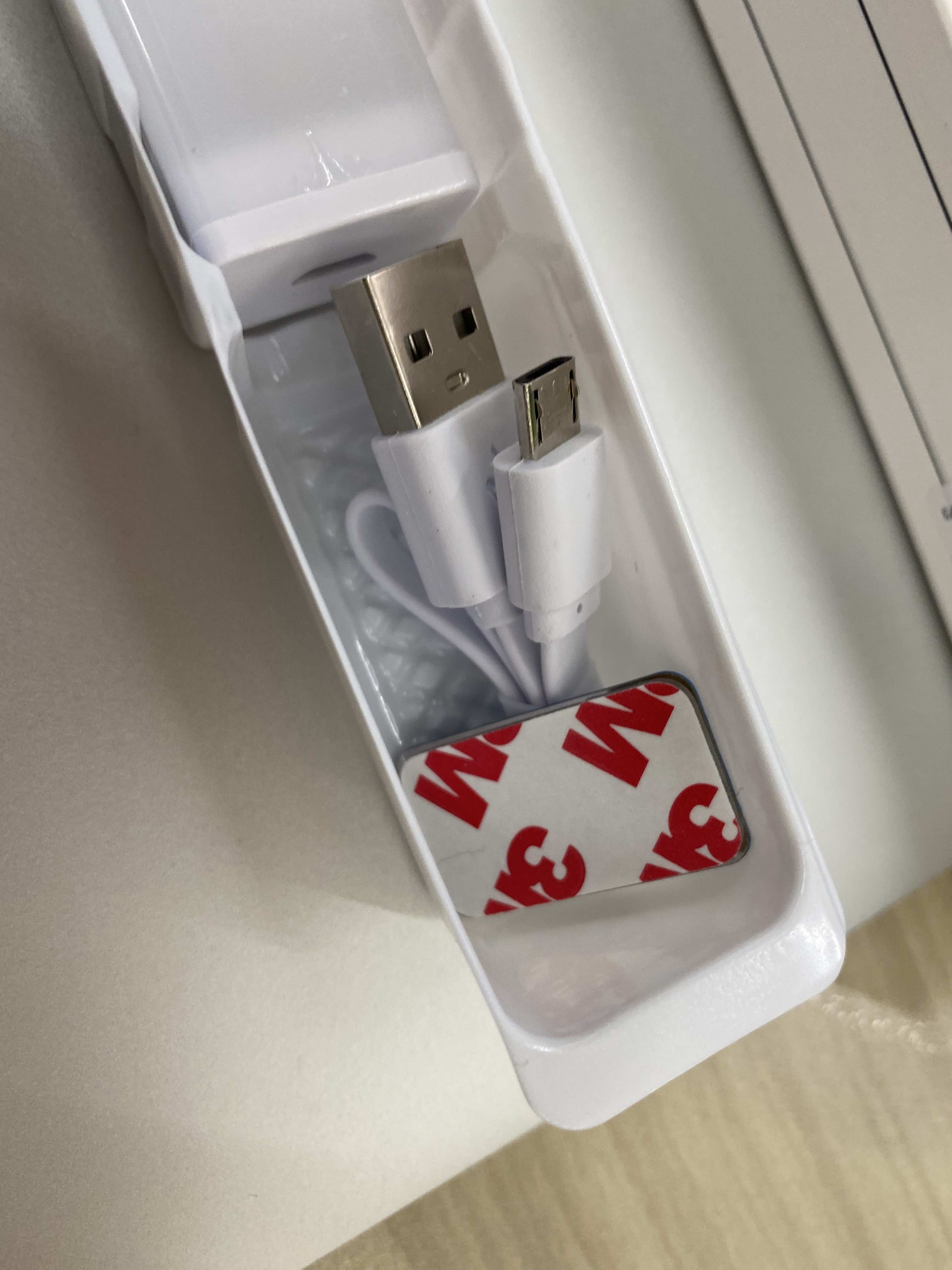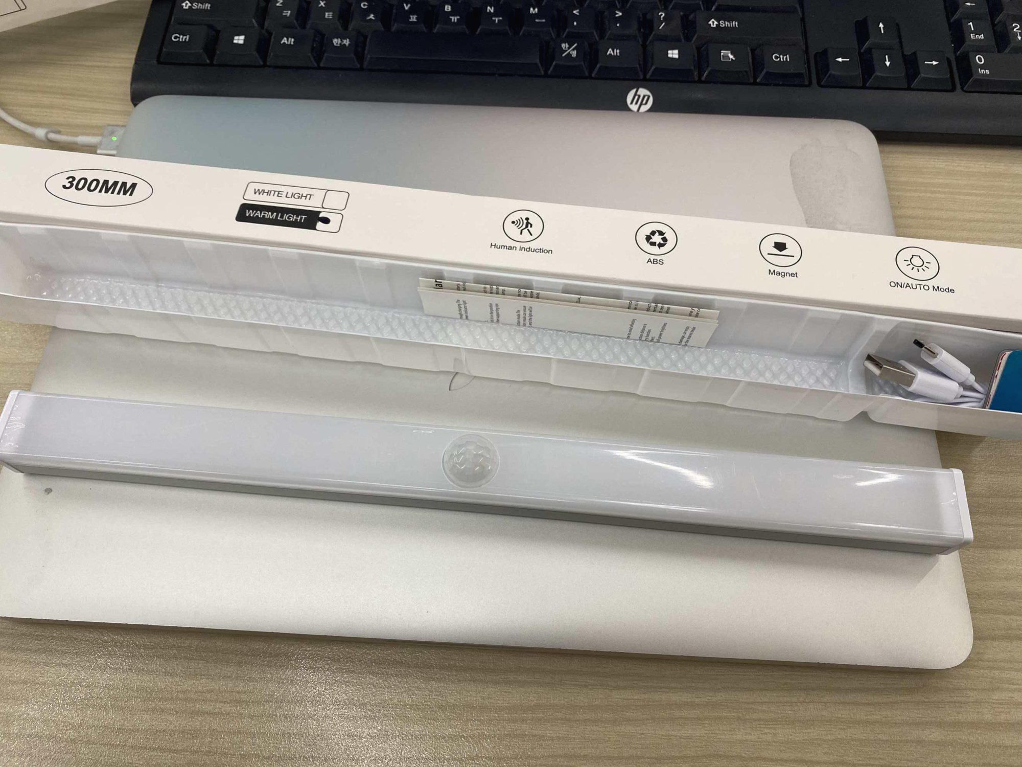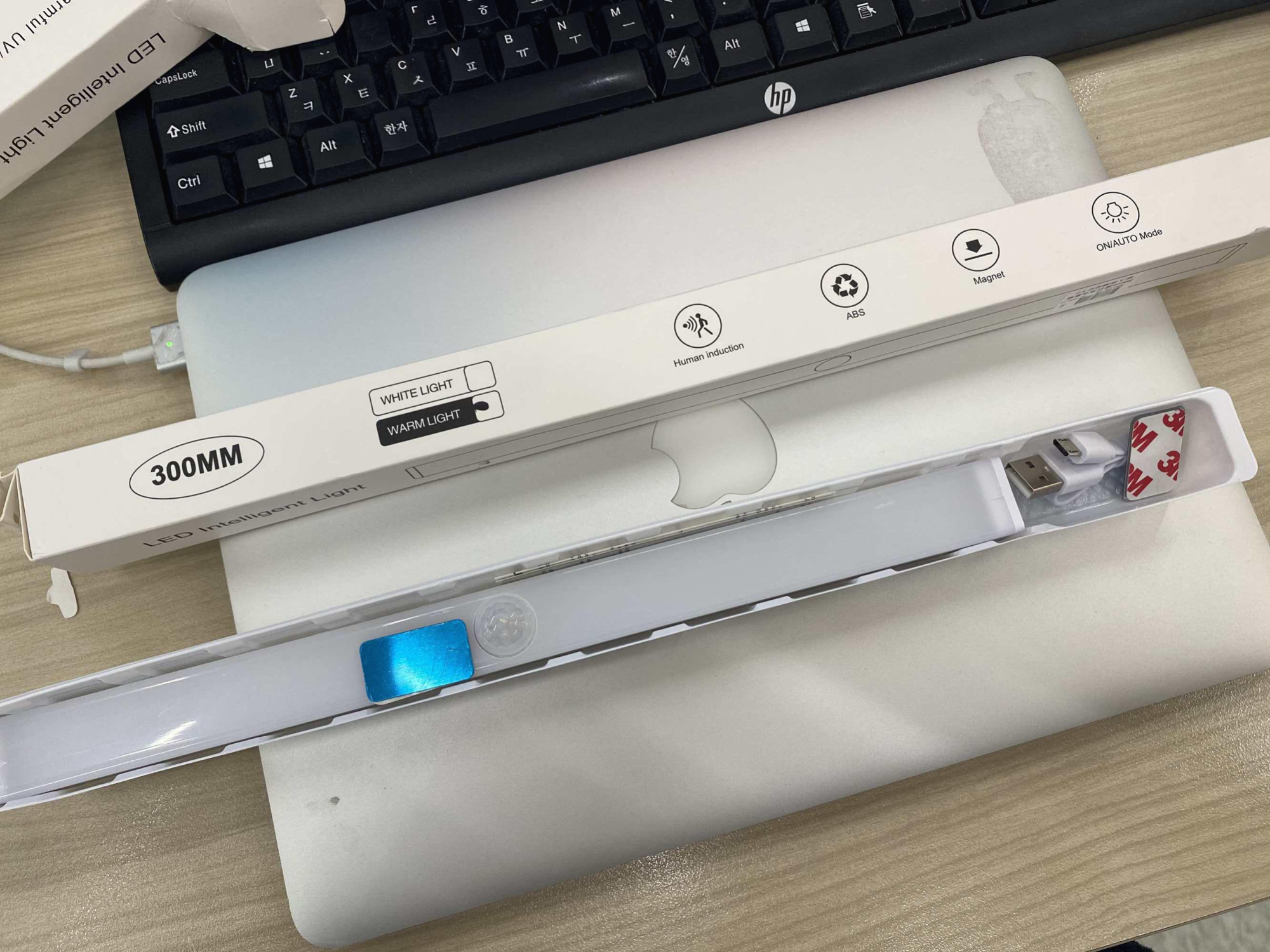 박스를 뜯으면 형광등처럼 포장되어 있고, usb 충전 케이블과 자석테이프가 들어있다. 어디 붙여놓고 쓰라는건데 이게 중간중간 충전을 해야하는걸 생각하면 자석 스티커를 안쓰게 된다는.. 포장 꼼꼼하다.