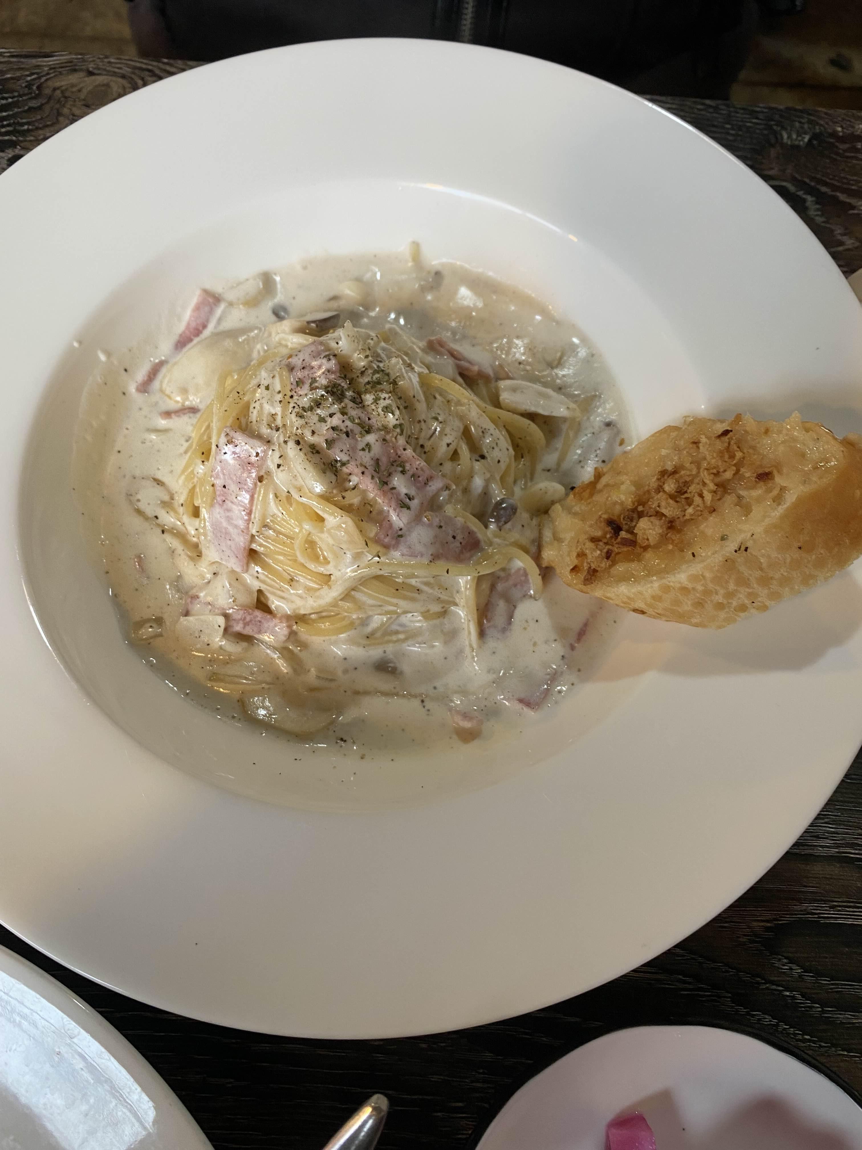 알리올리오랑 킹콩파스타라고 하는 크림파스타를 주문. 오 면발이 탱탱하고 간도 딱 맞는다. 맛있다. 다음에 또 올 거 같다. 친절허시다. 따뜻한 차도 무료로 제공한다.