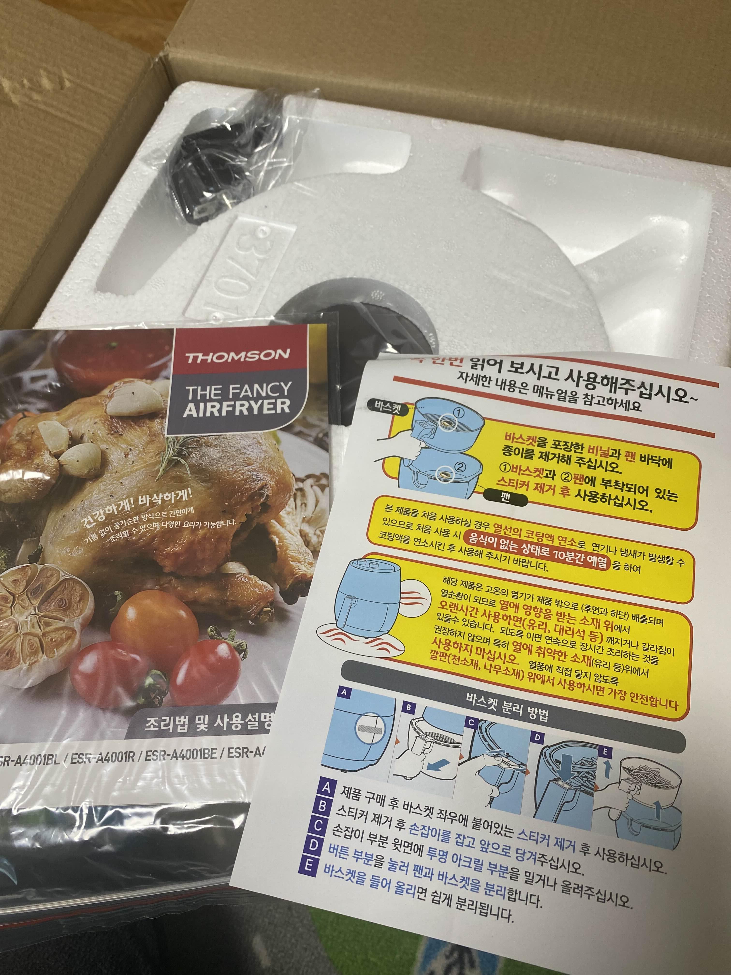 톰슨 에어프러이어 2.5 리터를 잘 쓰다가 좀 더 큰게 필요하기도 하고 오래 쓰기도 해서 4리터 짜리로 바꿨다. 이지웰에서 4만 9천원에 샀다. 모델명은 ESR-A4001