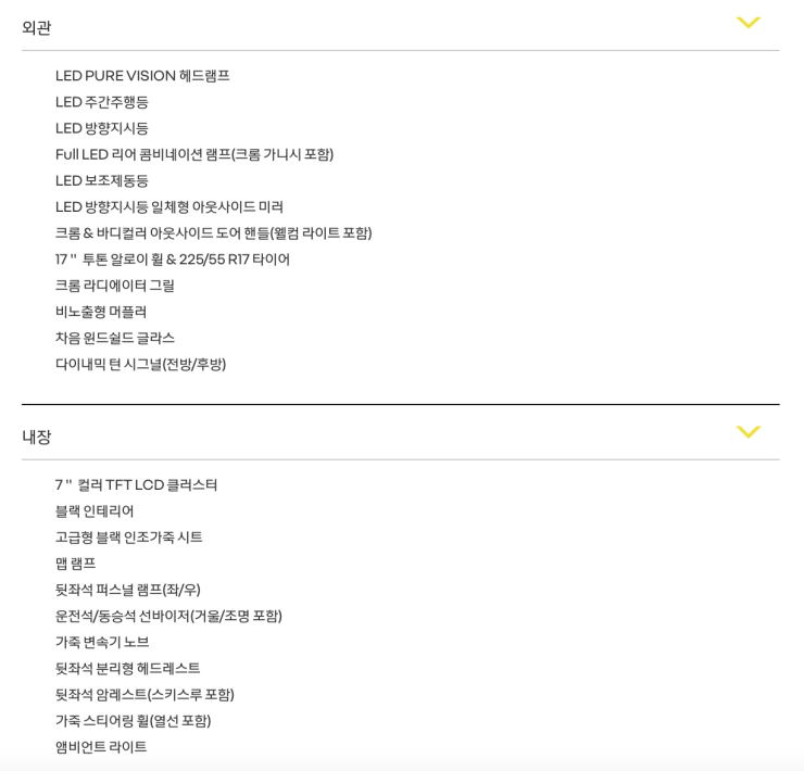 LED 퓨어 비전 헤드램프, 윈드실드 글라스, 그런데 후진시 사이드미러 하향 조정은 안되네.. 내장에서 기능성은 휠 열선 포함, 그 외에 별다른 기능성으로 뒷자석 스키스루 트렁크까지 긴 물건 넣을 수 있는 것, 뒷좌석 램프 좌우로 분리된 것, 원래는 중앙에 하나. 아 그런데 오토하이빔 기능은 옵션..
