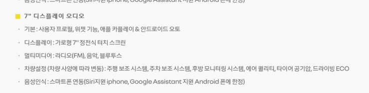 기본적으로 계기판 말고 오디오쪽은 별다른 디스플레이 없었는데 오디오쪽에 7인치 디스플레이 오디오가 들어간다. 이것이 애플 카플레이와 '유선' 연결로 된다고.