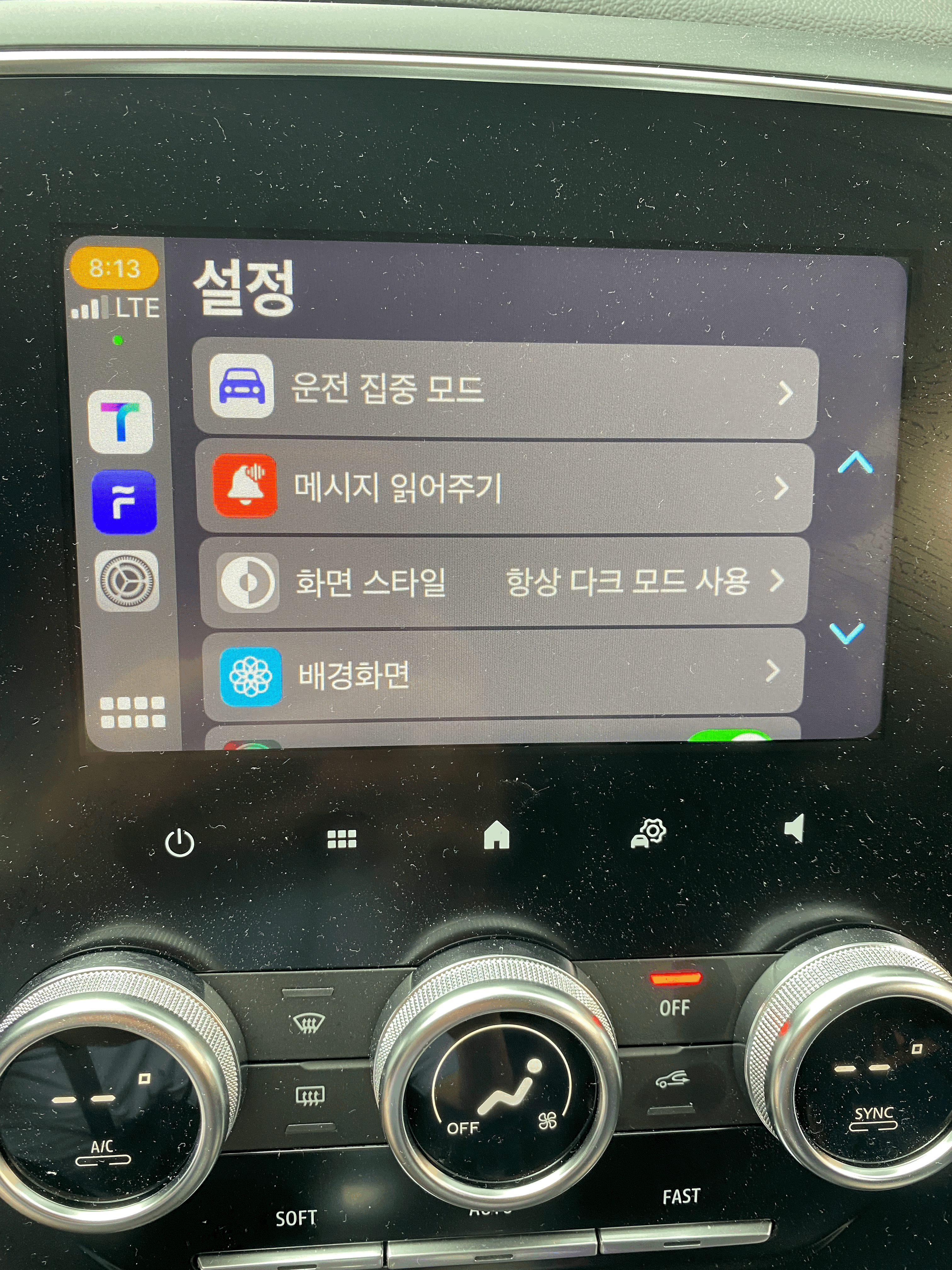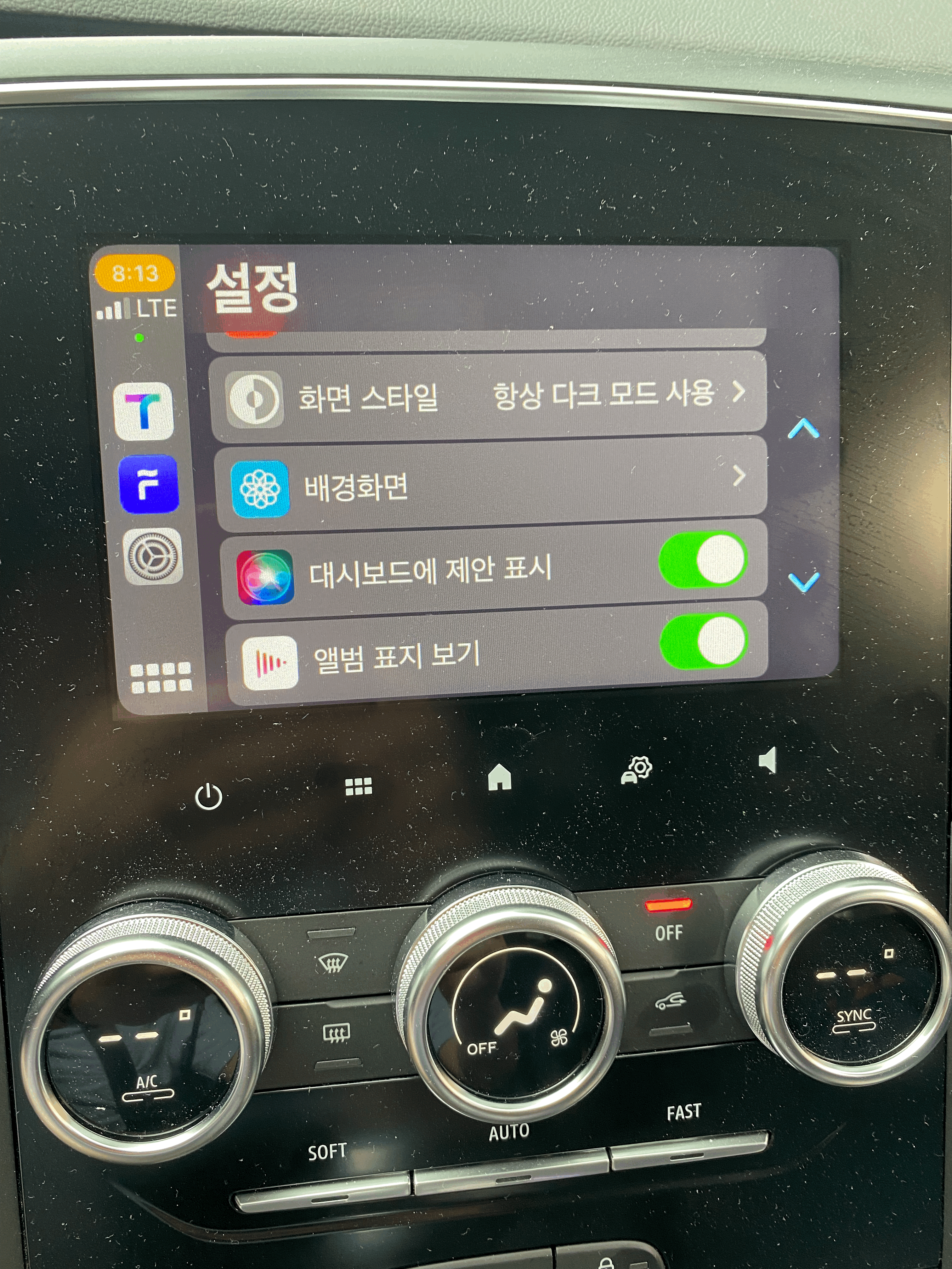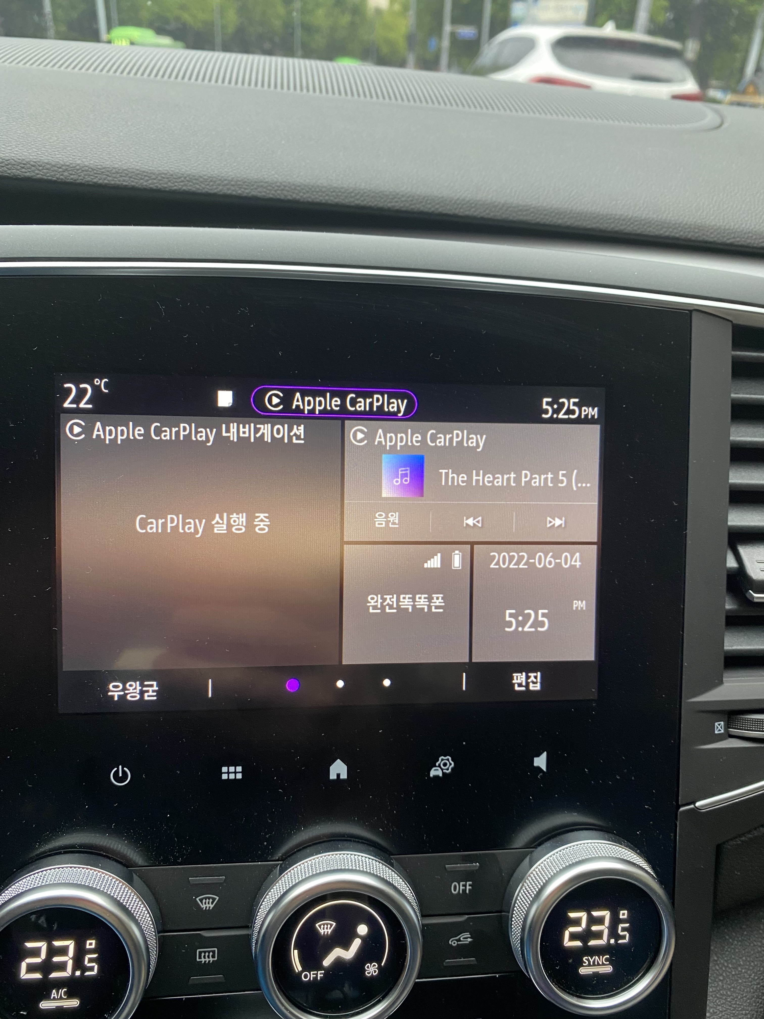 그래도 이렇게 나오는게 앞서 sm6 대시보드에서 이상하게 나오는 화면보단 좋아보입니다. 애플 지도 내비게이션 위젯과 애플뮤직 위젯으로 나오는건 뭔가 좀 밋밋.