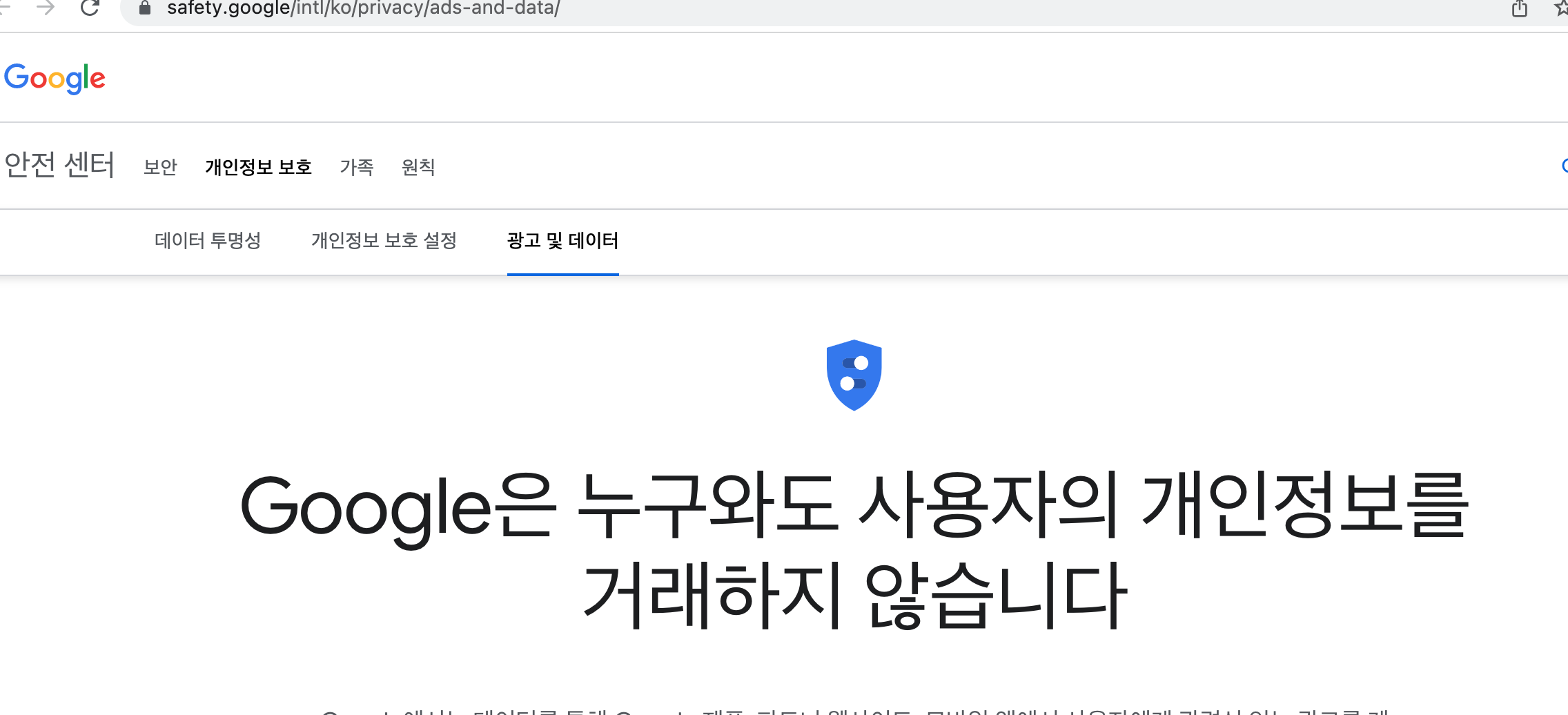 그리고 나서 그 다음엔 이런 페이지도 있다. 그렇지 구글은 사용자의 개인정보를 거래하지 않지.. 자기들이 비즈니스에 사용해야 하니까.. 다른 사람하고 공유하면 돈을 못 버니까....