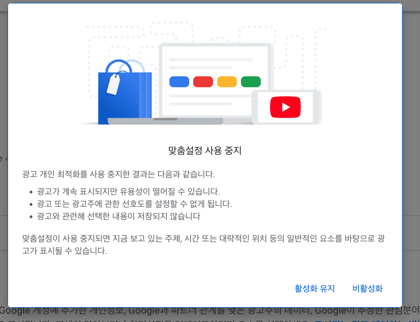 구글 유튜브에 모바일로 접속하면 이상한 성인 동영상 광고가 맨 위에 뜬다. 이게 얼핏 생각하면 맞춤형 광고라 내가 뭘 봤길래 이런 광고가 뜨나 하지만 사실 나는 맞춤형 광고를 오히려 '받지 않도록' 설정해 둔 상태이다. 그런데 오히려 이게 화근이다. 아무 광고가 막 틀어제끼는 것이다. 맞춤형 광고가 싫은 이유는 내 브라우저 기록을 구글이 분석을 해서 내 사이트 방문 행태를 이용하는 것 때문이었는데. 오히려 그걸 하지말라고 했더니 정작 나에게 아무 상관없는 광고, 심지어 성인 광고를 내 보내고 있는 것이다.