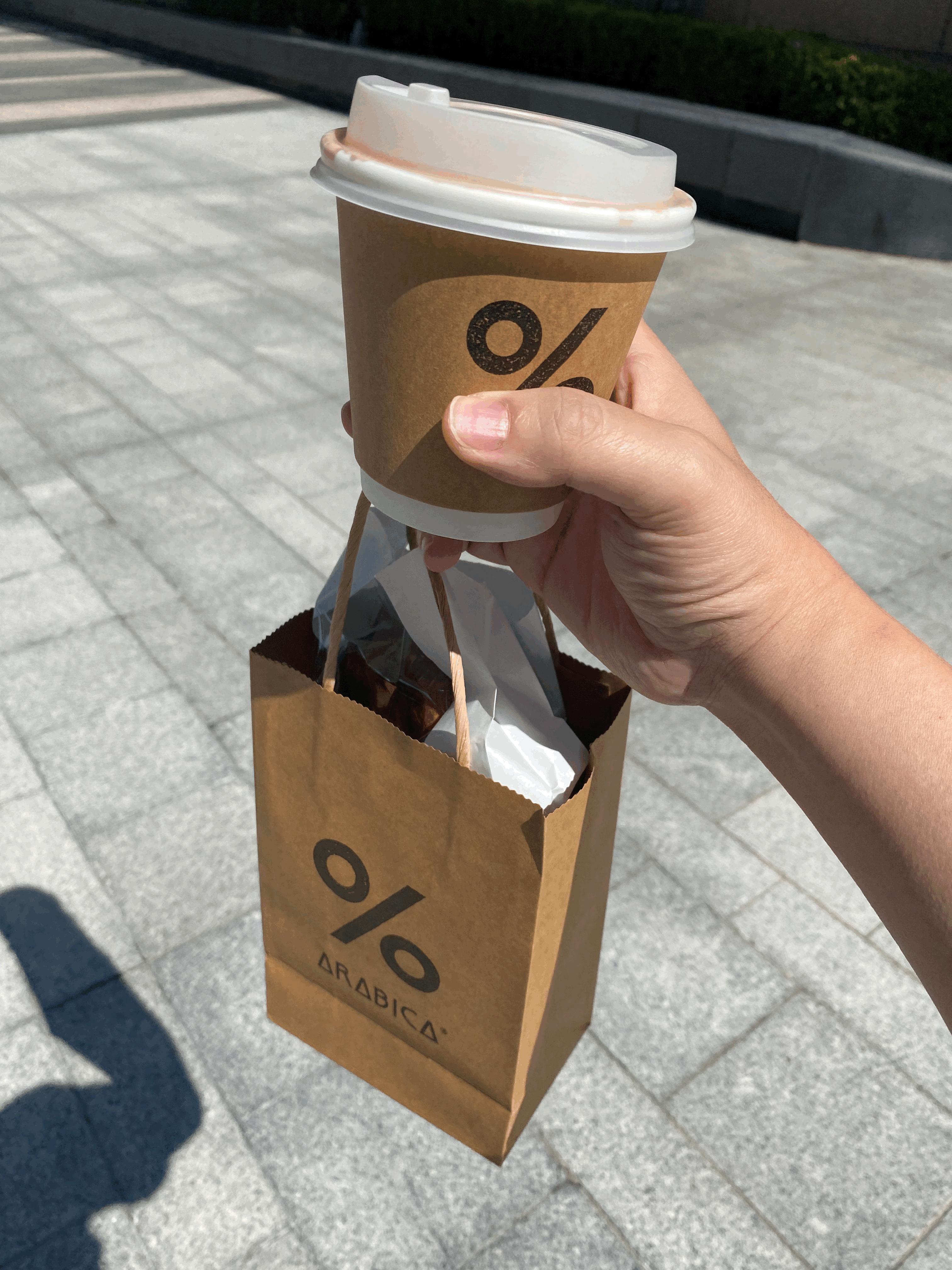 일본에서 유명해졌다고 하길래 교토 라테라는 메뉴를 주문해 봤다. 사실 우리는 직장인이라 사무실로 바로 들어갔지만 일본에서 유명해진 이유는 우리처럼 테이크아웃 하는 사람들때문에 유명해진 건 아니고 매장에 앉아서 온전히 커피를 느끼는 사람들이 입소문으로 만들어낸 감성이 아닐까 싶은데 우리 일행의 경험은 좀 엉터리일수도 있고, 줄을 서서 테이크아웃해서 가지고 나가는 사람들도 좀 반만 퍼센트 아라비카를 경험하는 건지도 모르겠다. 하긴 블루보틀도 그랬으니 말이다. 매장에서 마시는 경험으로 소문이 난 건데 이렇게 투고 to go 방식으로 주문해서 마시는것이 무슨 소용이란 말인가 나조차도 그렇게 생각.