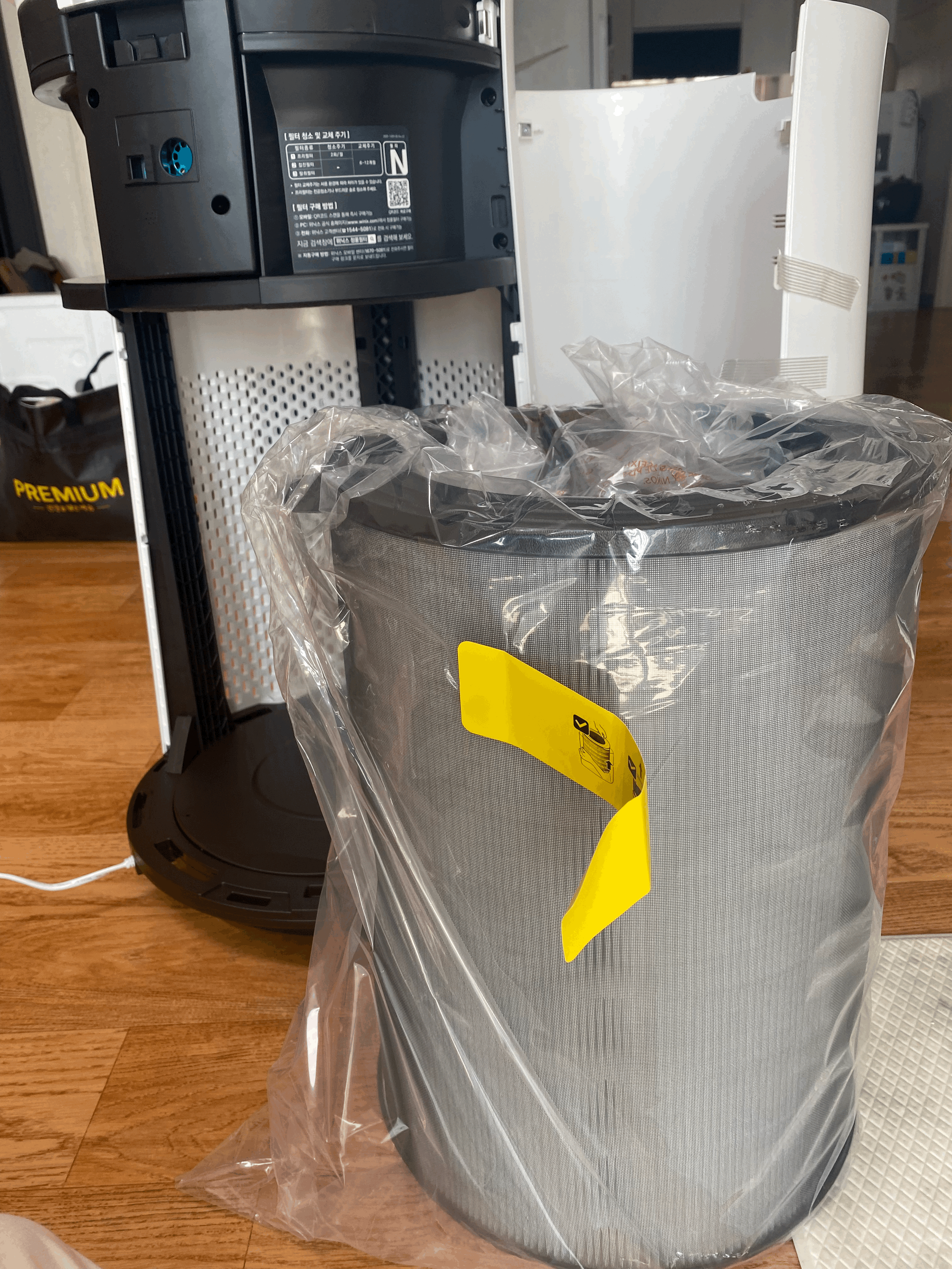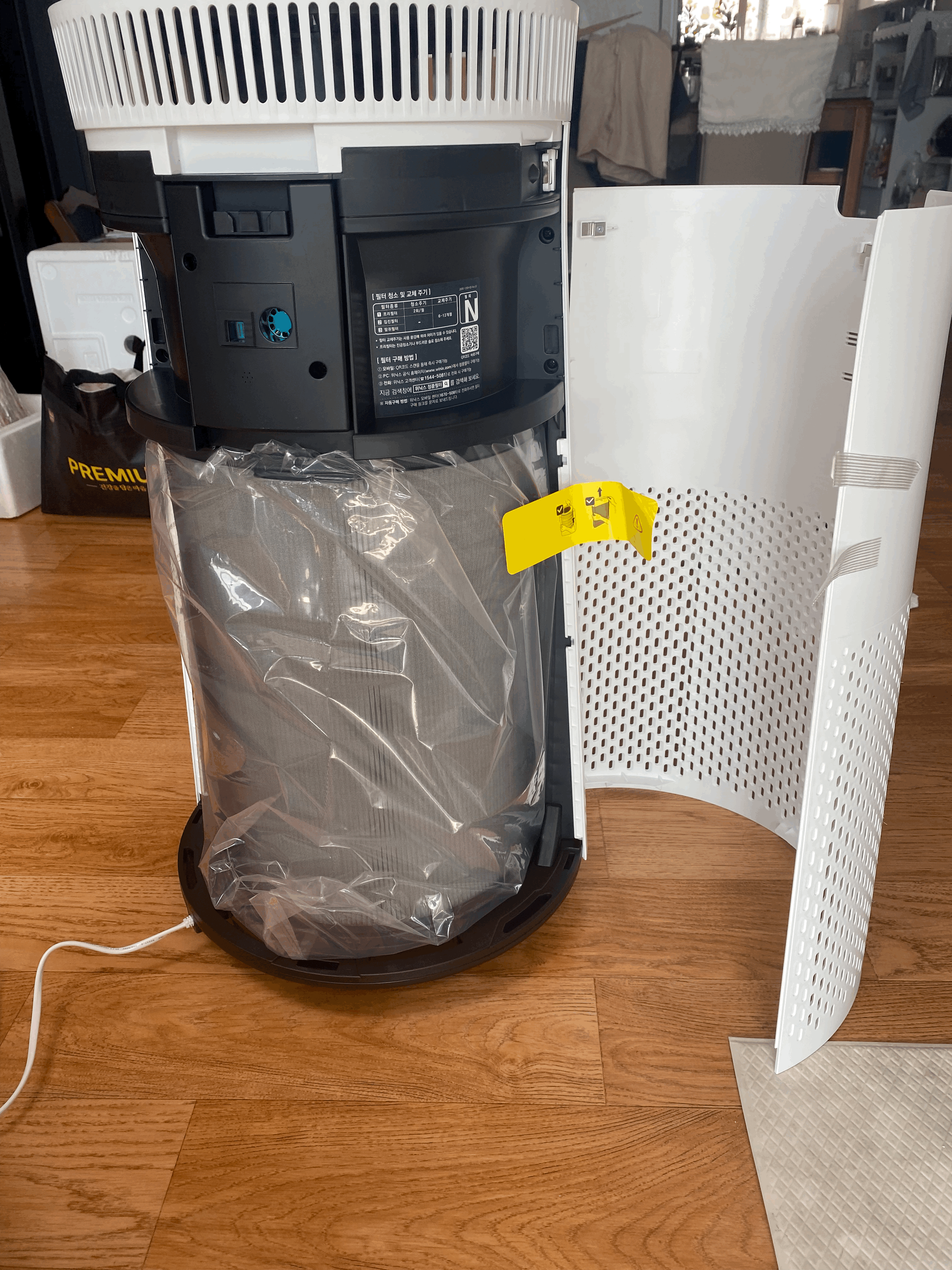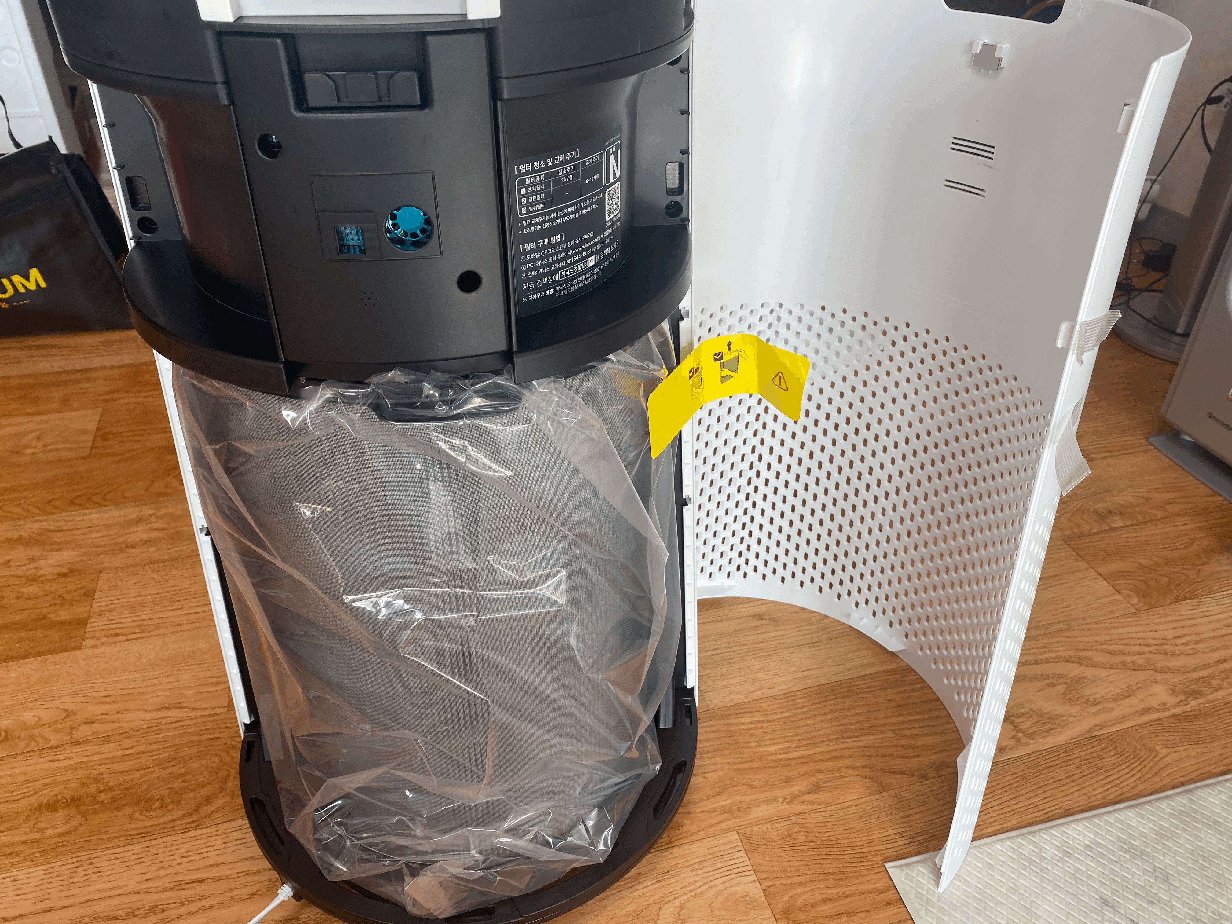 이건 이제 처음 사서 필터를 끼우는 부분이다. 다들 지적하는건 6개월에서 1년사이에 교체해주는 정품 필터 값이 너무 비싸다는 부분이다. 위닉스 뿐만 아니라 어지간한 공기청정기들은 다 이렇게 이 필터가지고 돈을 버는 것 같다. 그런데 또 인터넷에 정품호환은 비교적 저렴하게 팔고 본사는 제발 정품 써주세요 하고 마케팅에 열을 올리고 있다. 아무튼 내년봄까지 쓰고 내년 가을에 결정할 일.
