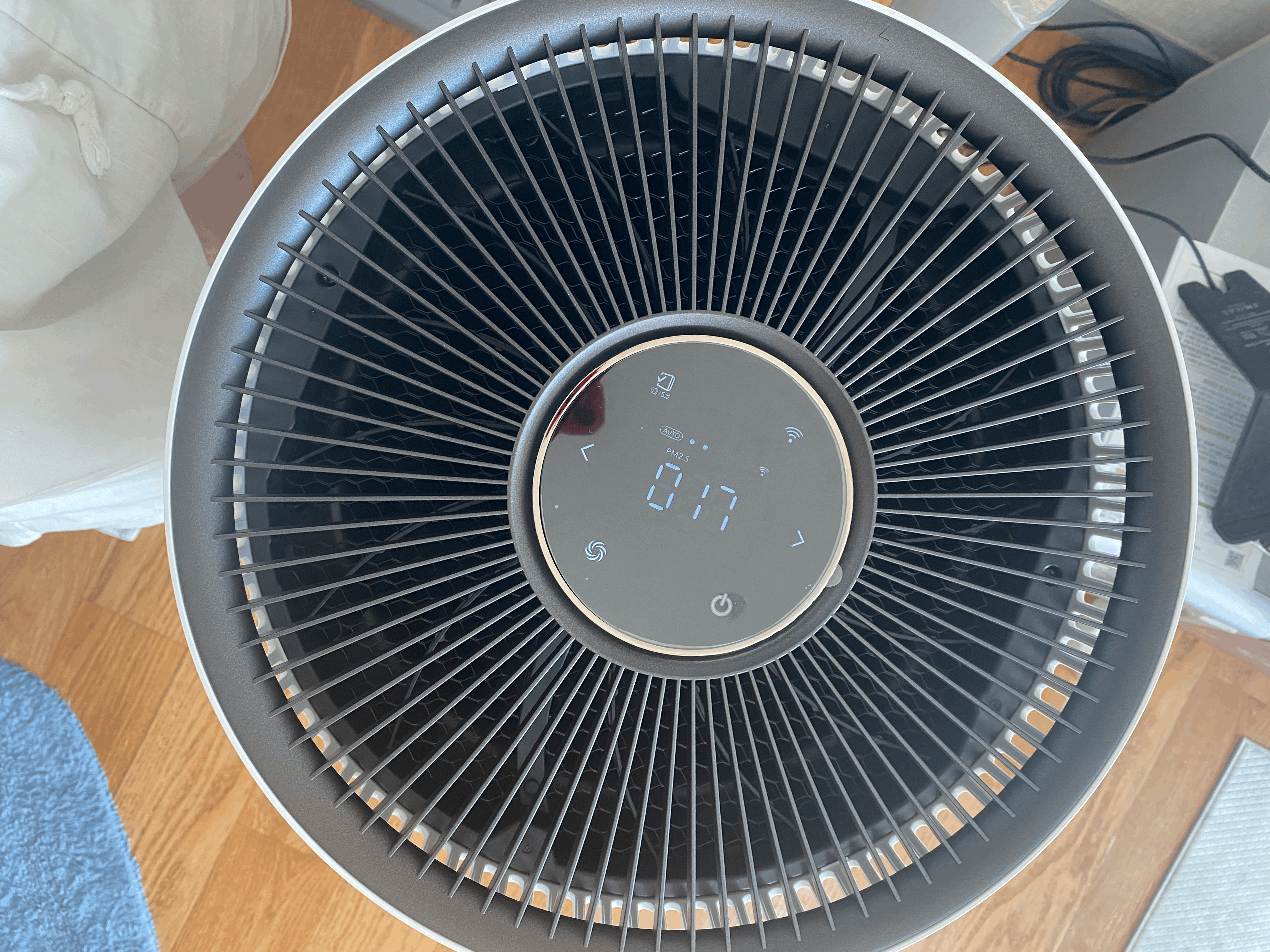 무게가 무겁거나 그렇지는 않다. 다시 말하지만 바퀴가 달려있다. 집안에서 옮기면서 이용하기 좋다. 위에 뚜껑에 터치되어 전원키면 또 그게 다다. 별다른 기능이 없고 공기가 더러우면 빨간색 한참 틀어놓으면 파란색으로 바뀐다. 중간에 초록색 단계가 한번 더 있다. 그런데 1달 정도 써봤는데 확실히 공기청정이 되는걸 느낀다. 굽는 요리를 하거나 그럴때 부엌이나 식탁쪽에서 틀어놓으면 기계가 아주 쎄게 돌아간다.