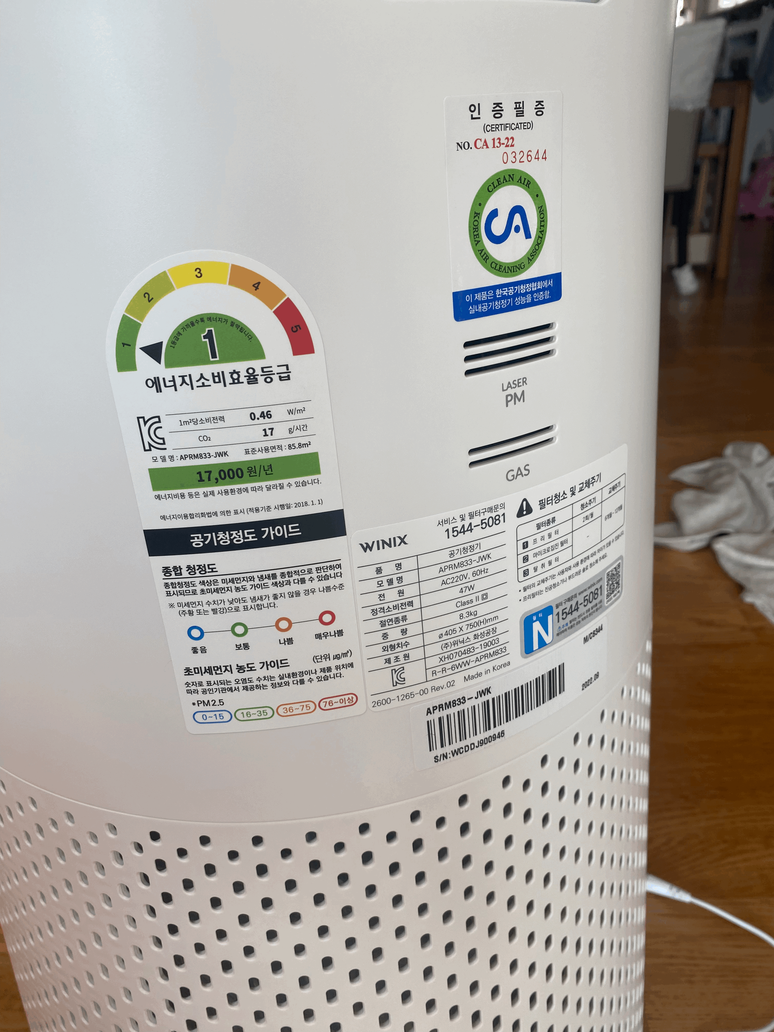 회사가 말하길 반드시 있어야 한다는 CA 인증마크 있다 공기청정기라면 이게 있어야 한단다.