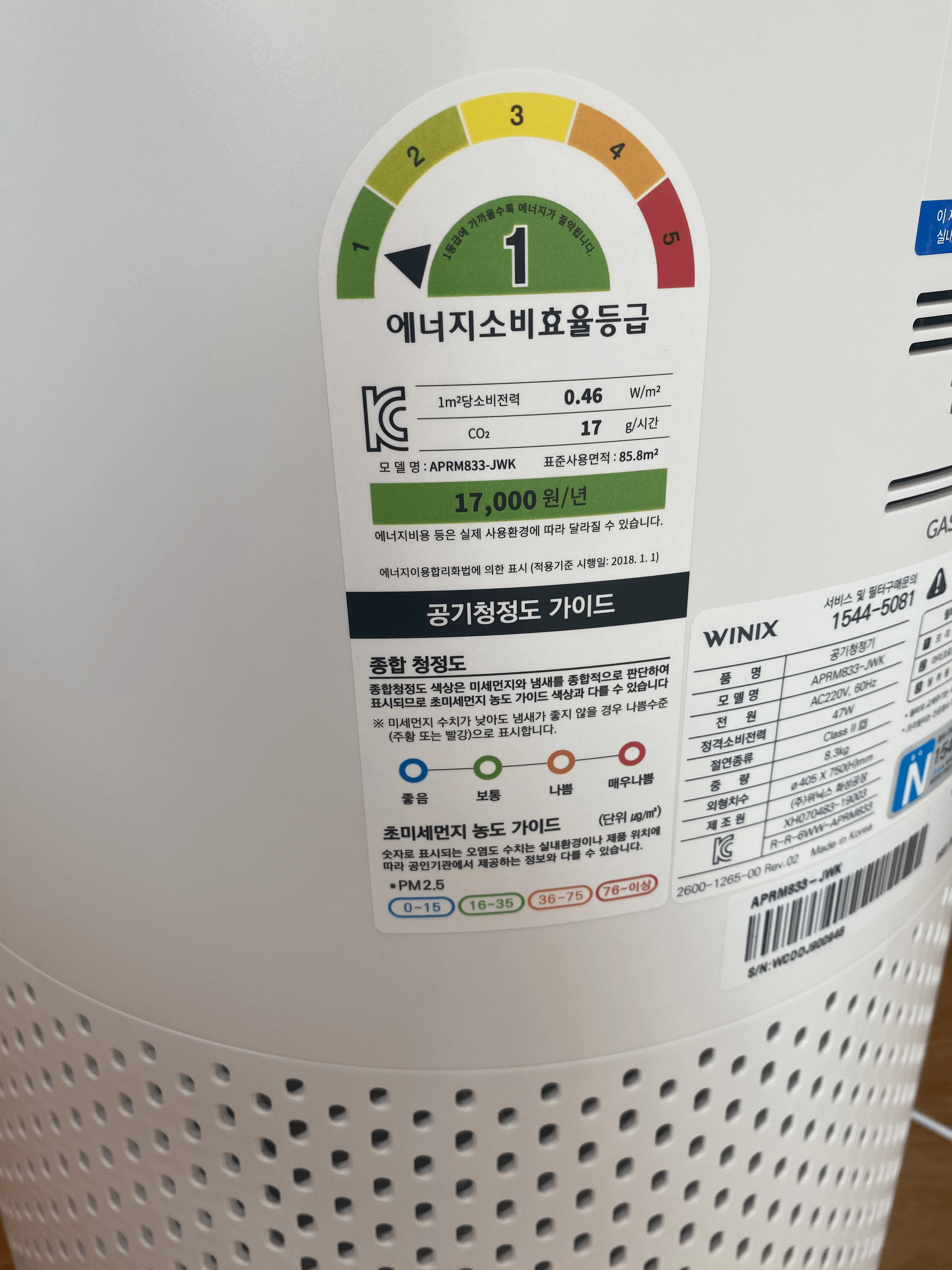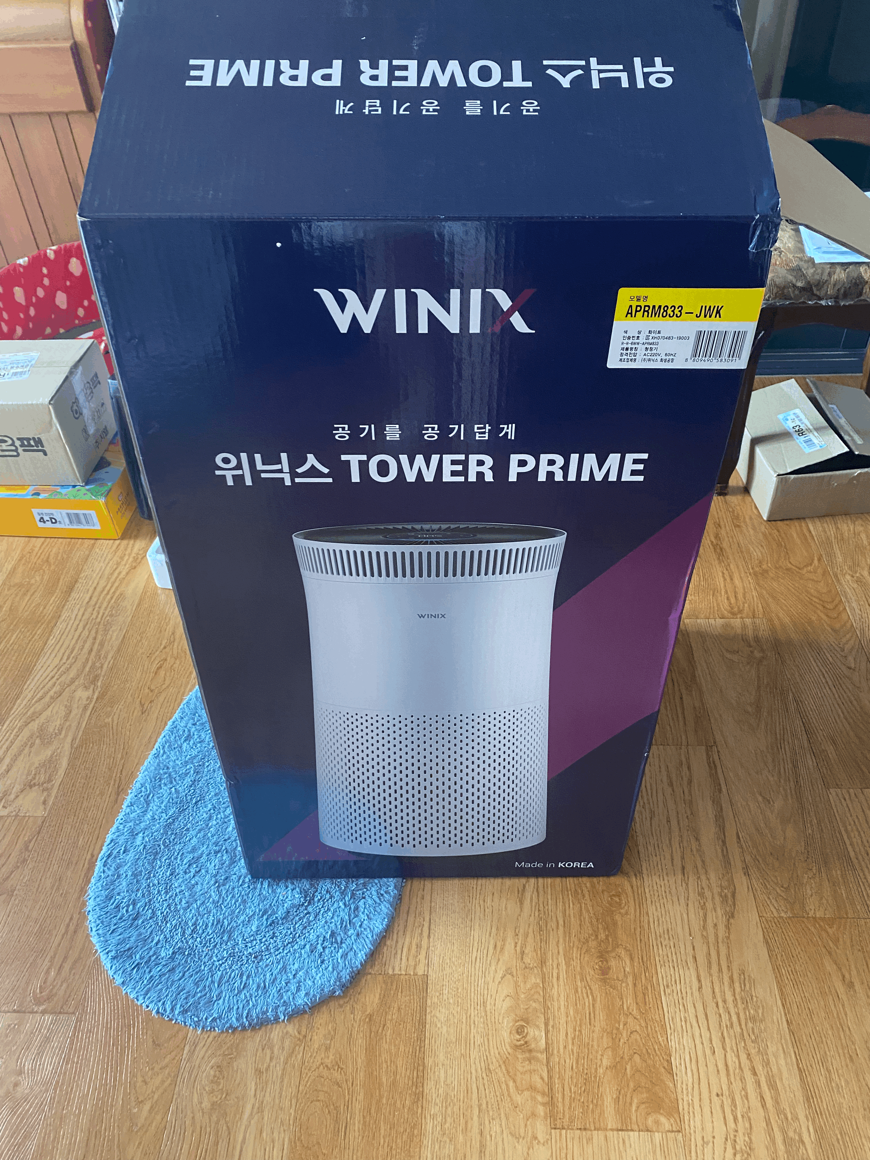 위닉스 타워형은 홈페이지에서도 할인을 하던데 몇만원 인터넷 쇼핑몰이 더 쌌고 모델명이 3개가 모두 타워프라임이라 그냥 같은거구나 했다 에너지효율등급 당연히 1등급. 그리고 매우 빠르게 배송이 왔다.
