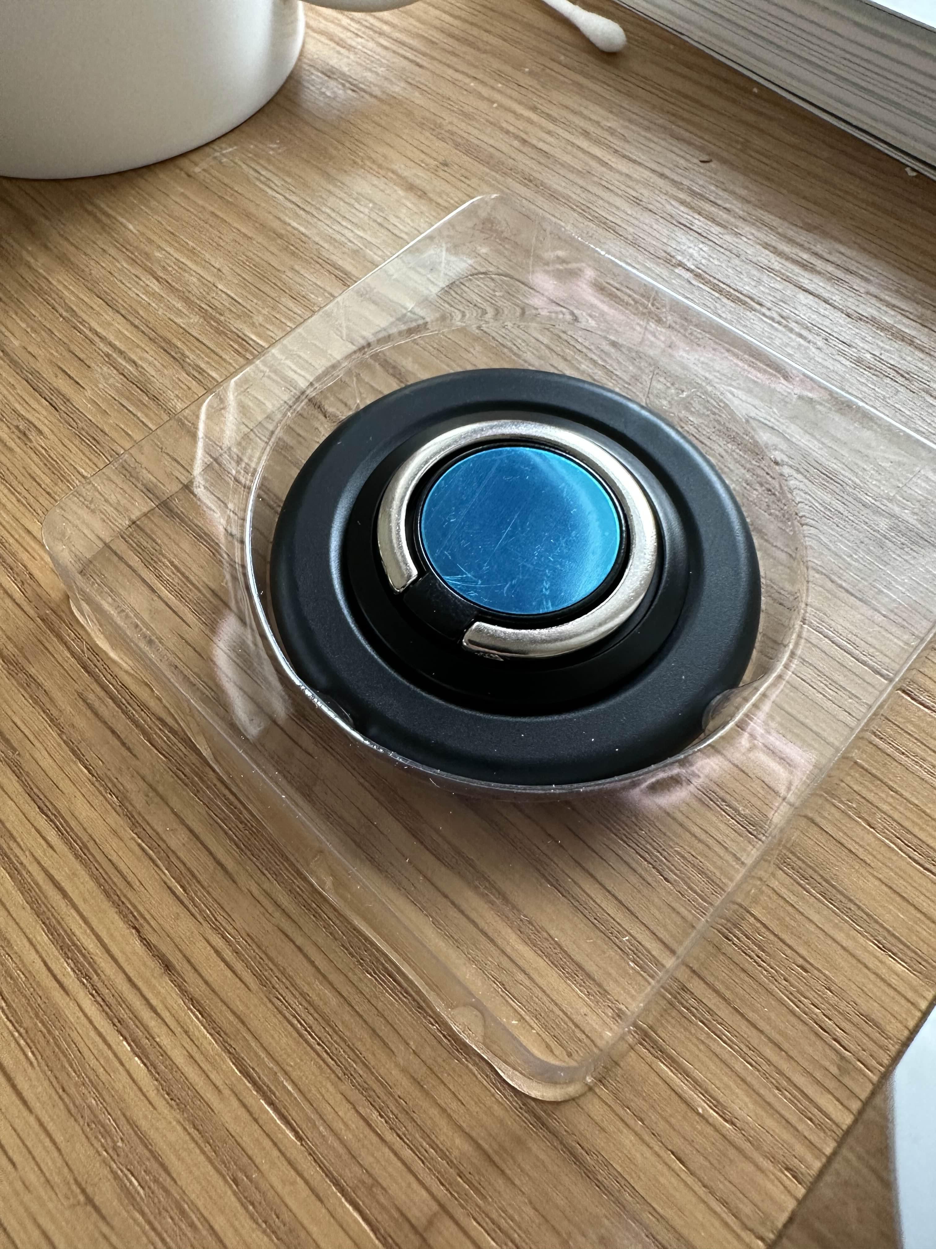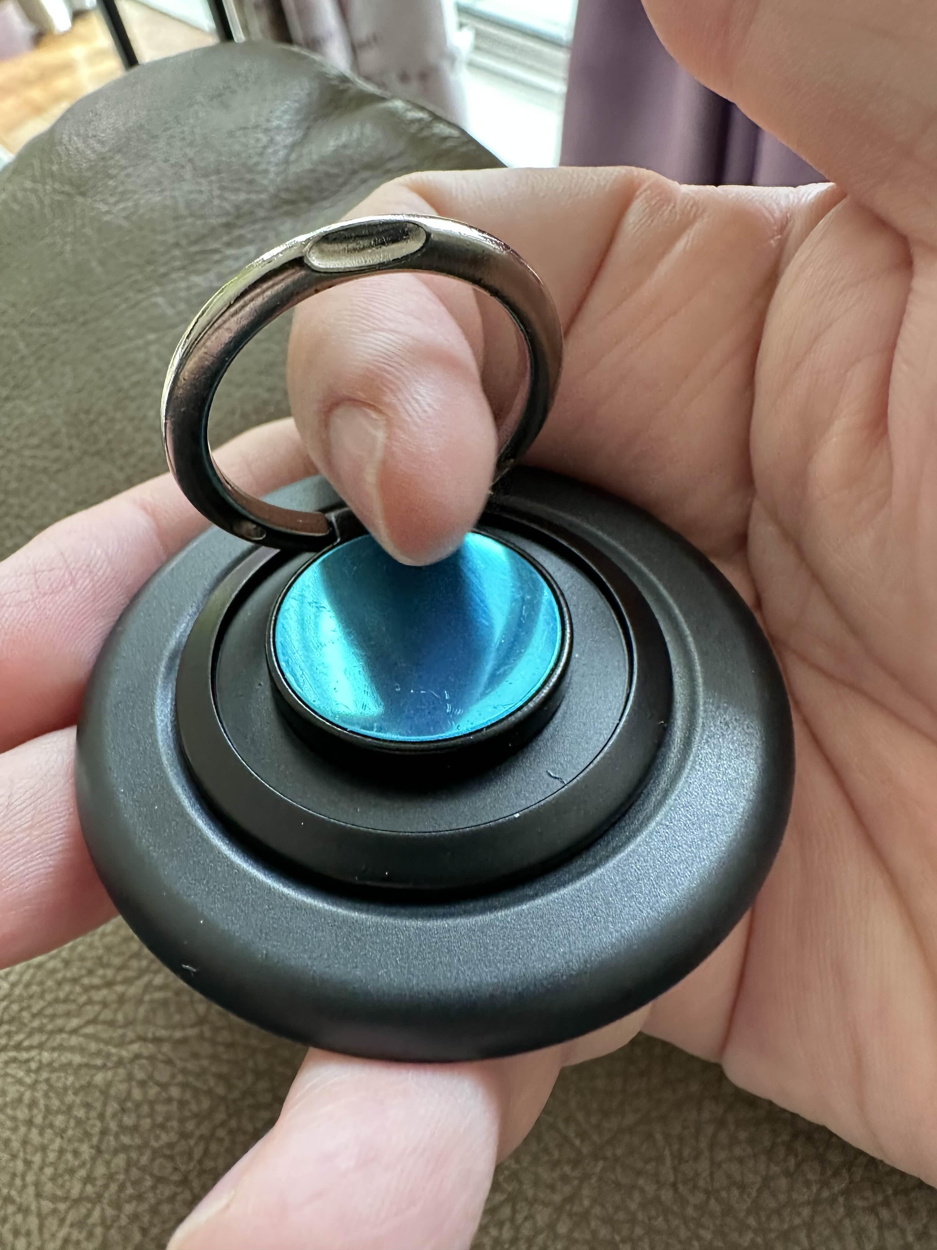 케이스 중에는 줄을 걸거나 할 수 있는 것이 가끔 나오지만 iPhone 12 버전 부터 맥 세이프 기능이 들어가면서 이 자석 기능을 이용한 몇 가지 악세사리들이 나오고 있다 그 중에 하나가 자석으로 붙어서 손가락을 걸고 사용할 수 있는 스마트폰 링이다.