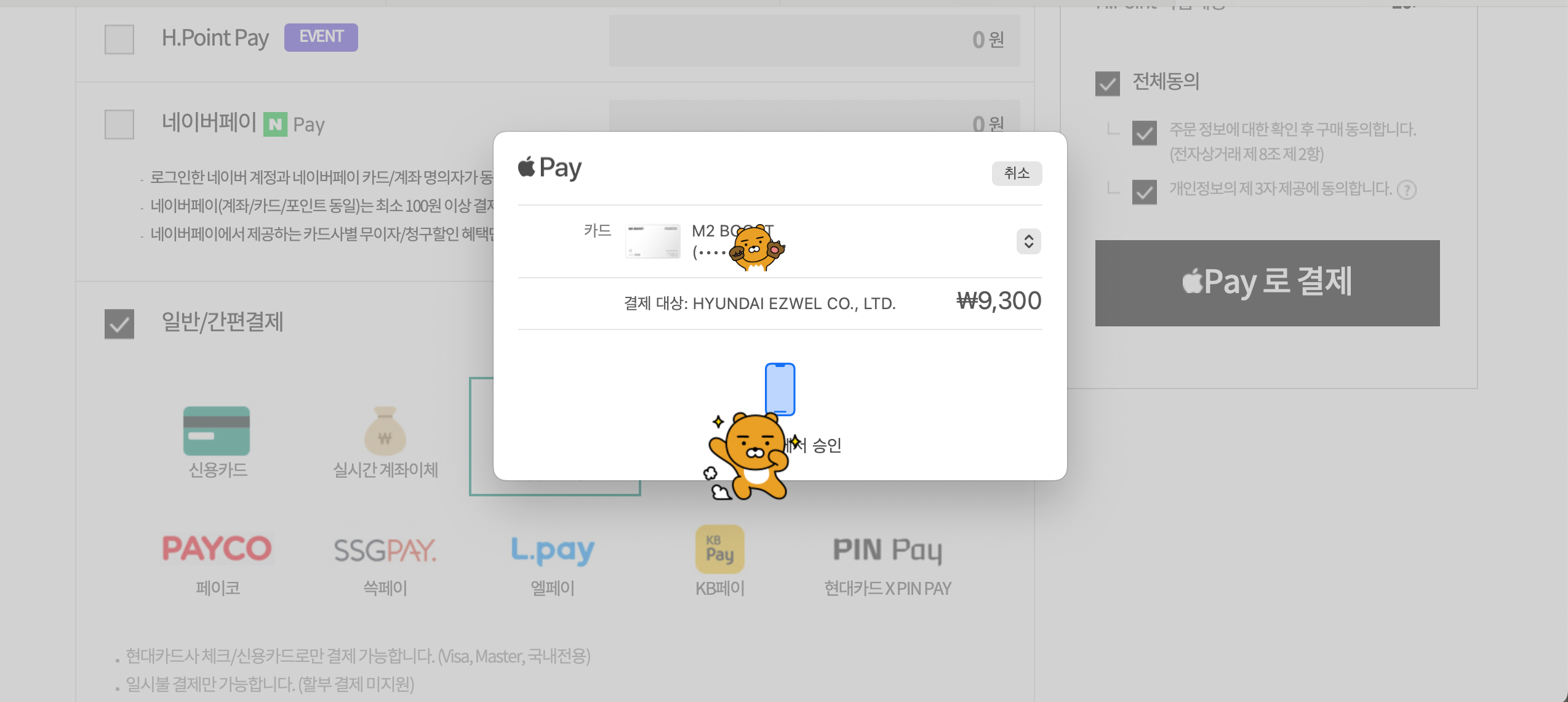 회사 복지몰인 이지웰은 현대계열사라 그런지 애플페이가 연동되어 있다. 애플페이가 연동된 온라인 결제몰은 많이 있지만 이왕 되어 있는거 한번 써보자는 생각으로 맥북에서 사파리를 열어서 이지웰에 접속하여 고구마를 주문.