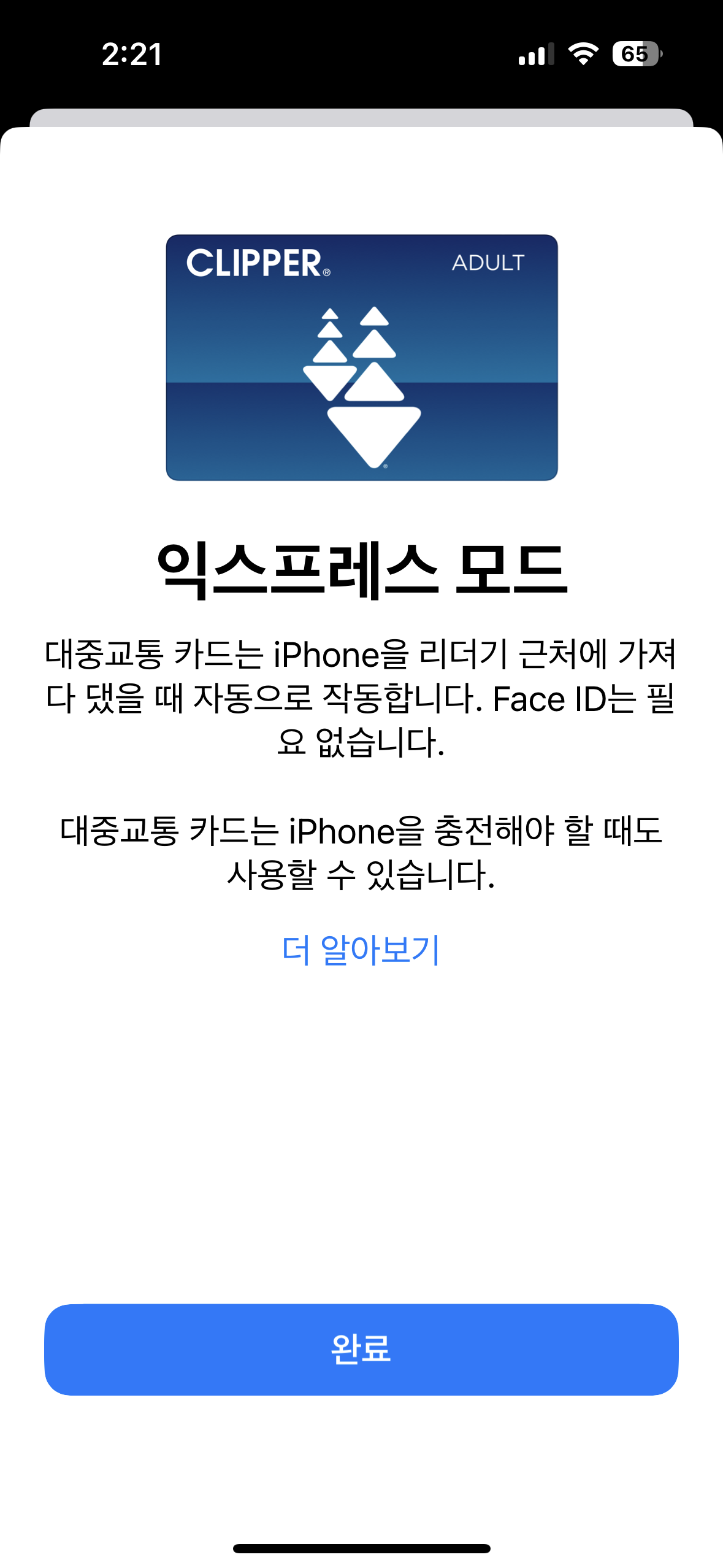 우리나라에선 최근에 현대카드로 애플페이가 되기 시작했지만 미국에서는 이미 애플페이가 되고 심지어 교통카드도 애플페이로 이용할 수 있다. 이번에 샌프란시스코 여행 준비하면서 알게 된 사실인데 어쨌거나 애플페이는 세계 호환이고 현대카드를 연결해 놓으면 미국에 가서도 애플페이를 쓸 수 있게 되었다. (현대카드에 문의하여 확인 받음)