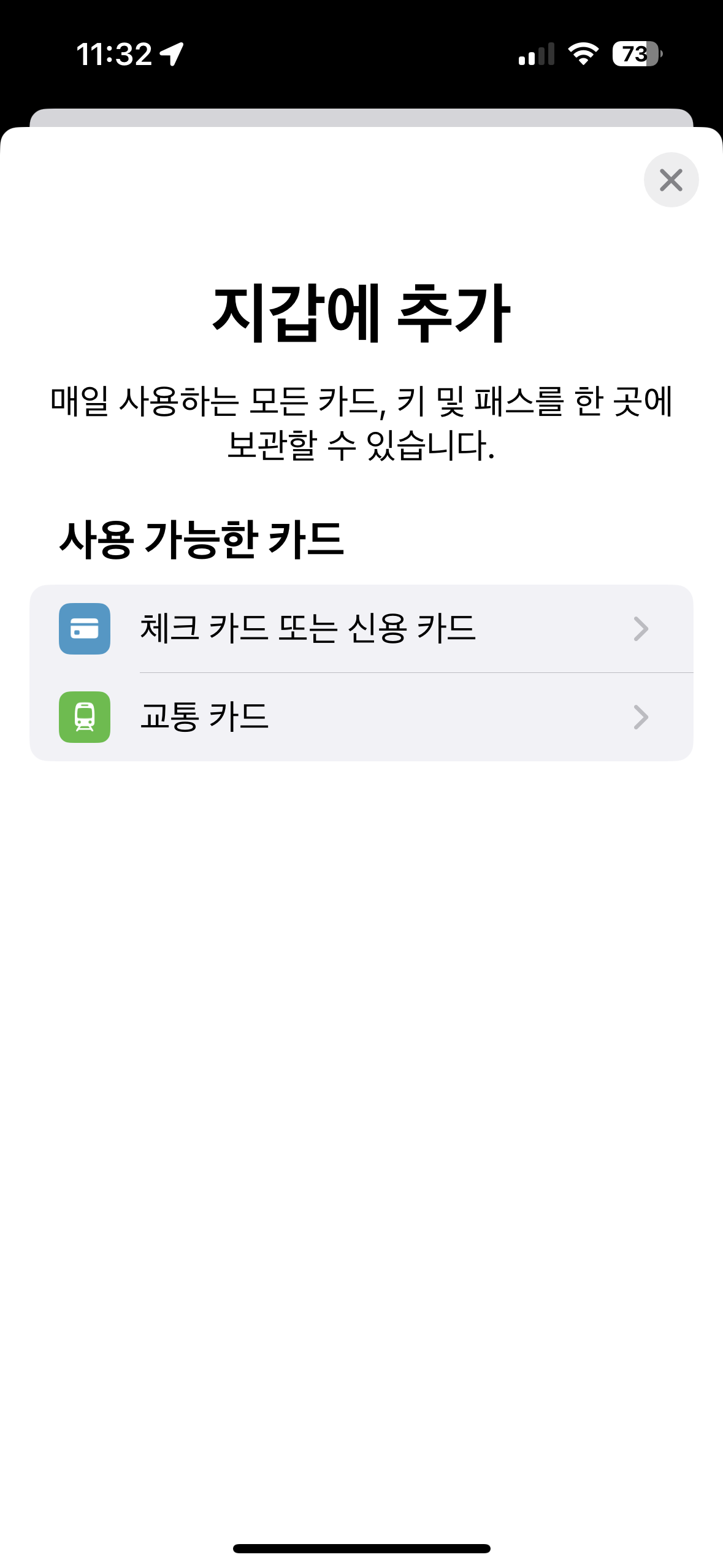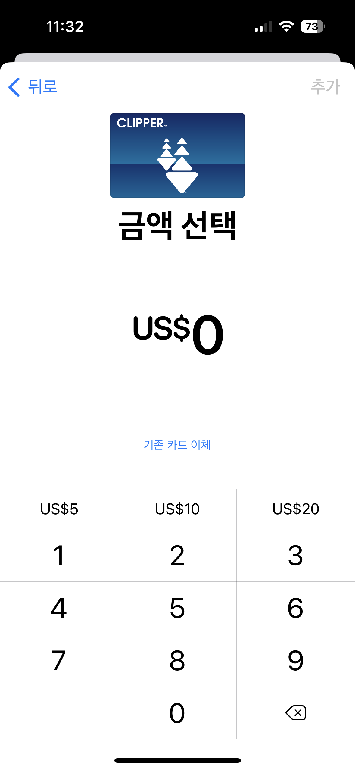 애플페이 앱인 아이폰 지갑앱을 열고 + 버튼을 눌러서 교통카드를 선택하고 Clipper 카드를 선택한다.