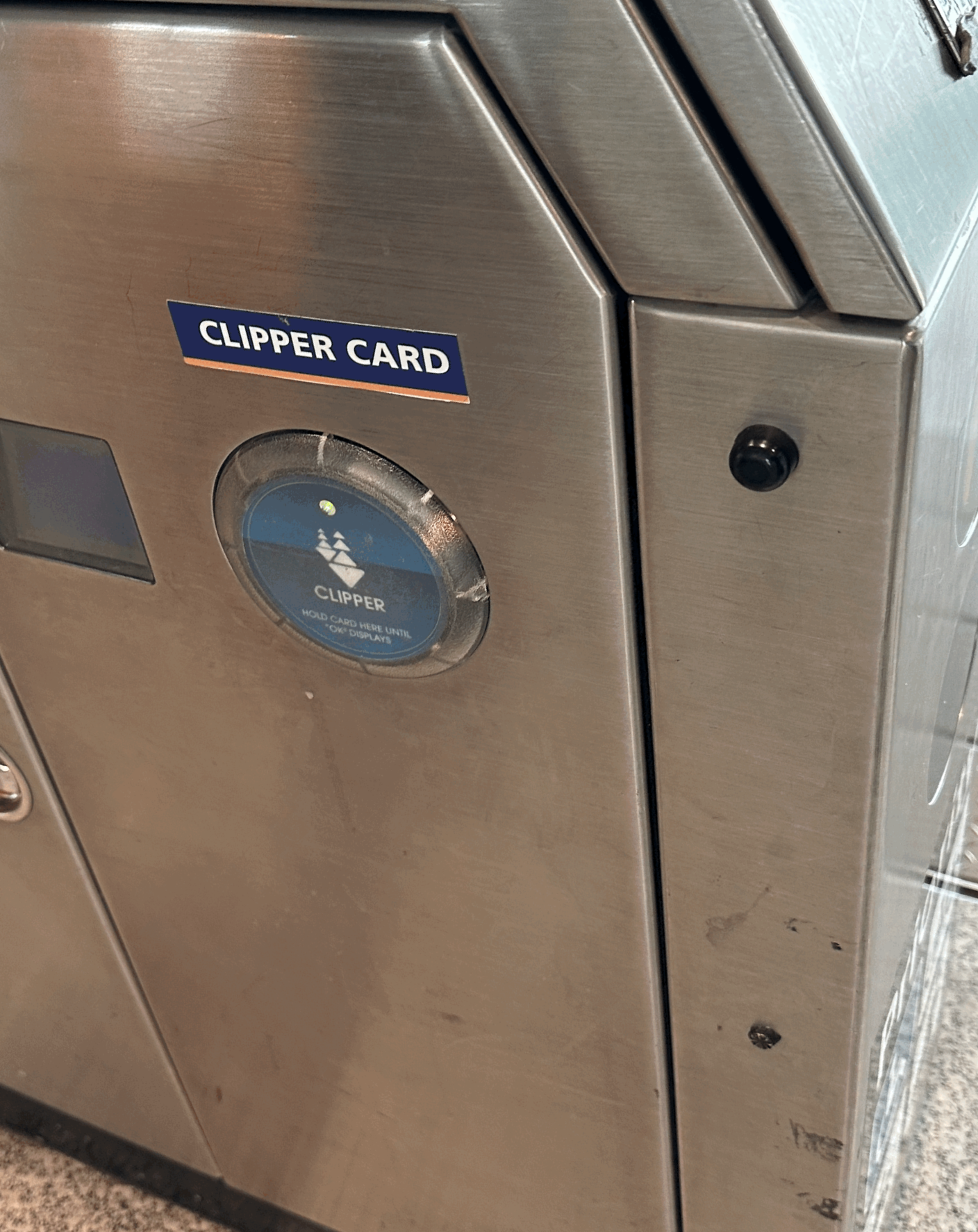 아이폰을 지하철 입구에서 여기 측면에 있는 클리퍼카드 인식하는곳에 댄다. 한국은 위에 있는데 샌프란시스코는 측면에 클리퍼카드 인식하는 부분이 있다.