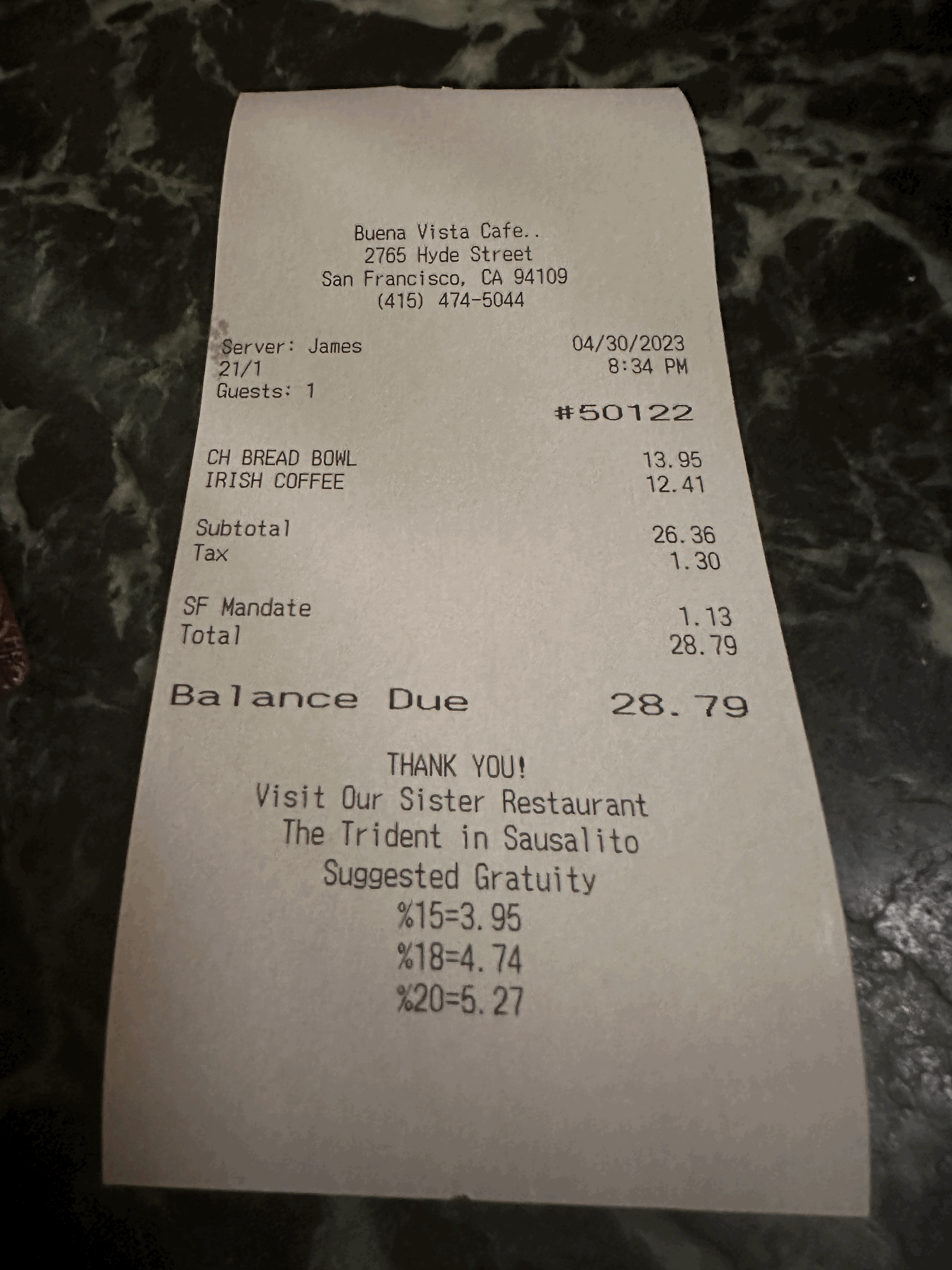 두 군데 모두 크램차우더 맛있지만, 이번에는 부에나 비스타를 갔어요 이유는 크램차우더만 먹을건 아니었기 때문이죠. 아이리시 커피를 마시기 위해서에요.