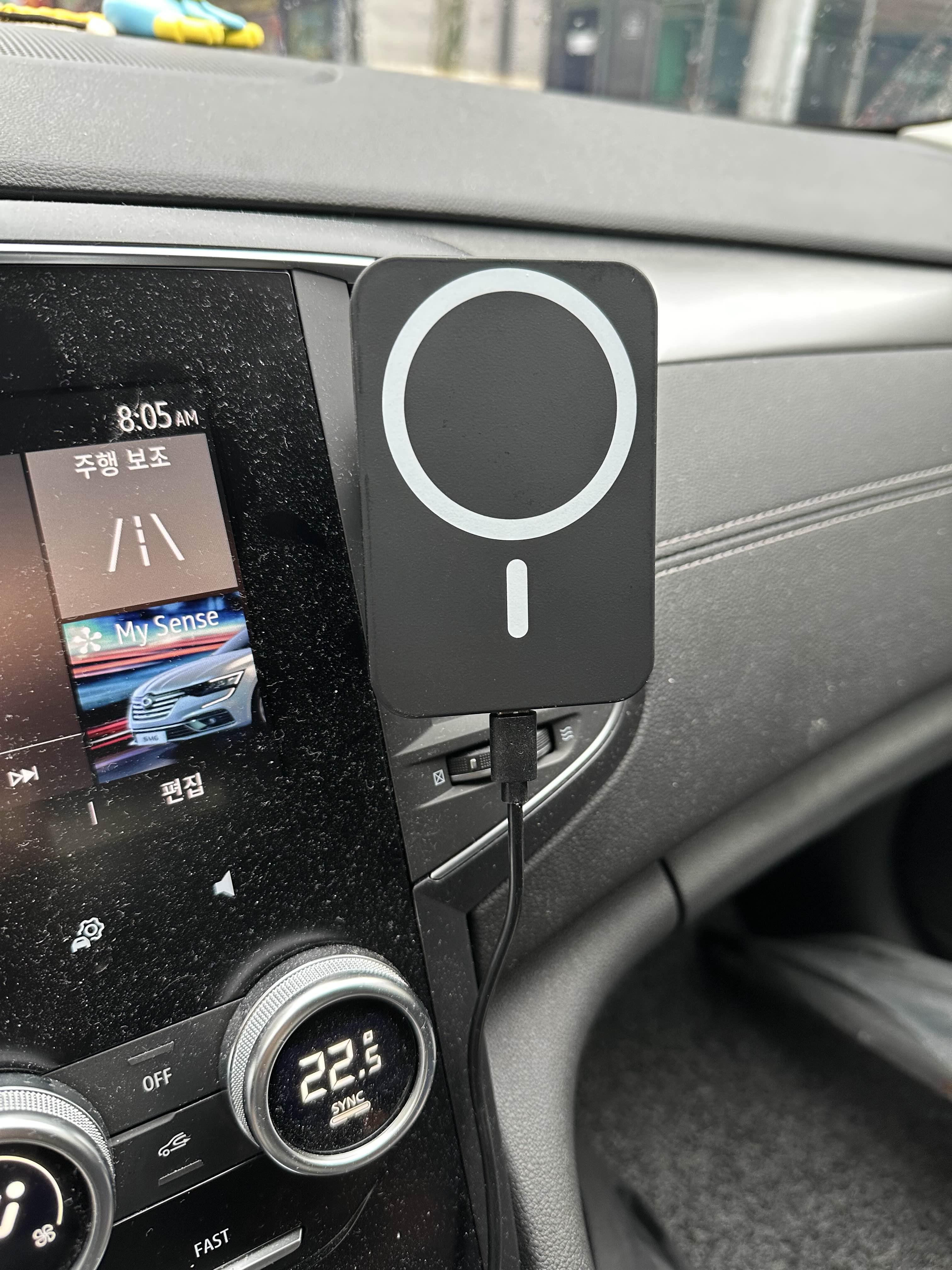 그러니까 만약 충전만 하고 카플레이는 안쓰겠다면 위 기기만 연결하고 자석으로 아이폰을 붙여놓은 후 운전하면 되고, 에어플레이를 써야 한다면 아이폰과 유선으로 별도의 케이블로 차와 연결한 후에 에어플레이를 쓰면서 위 제품은 거치대 용도로만 사용하면 된다.