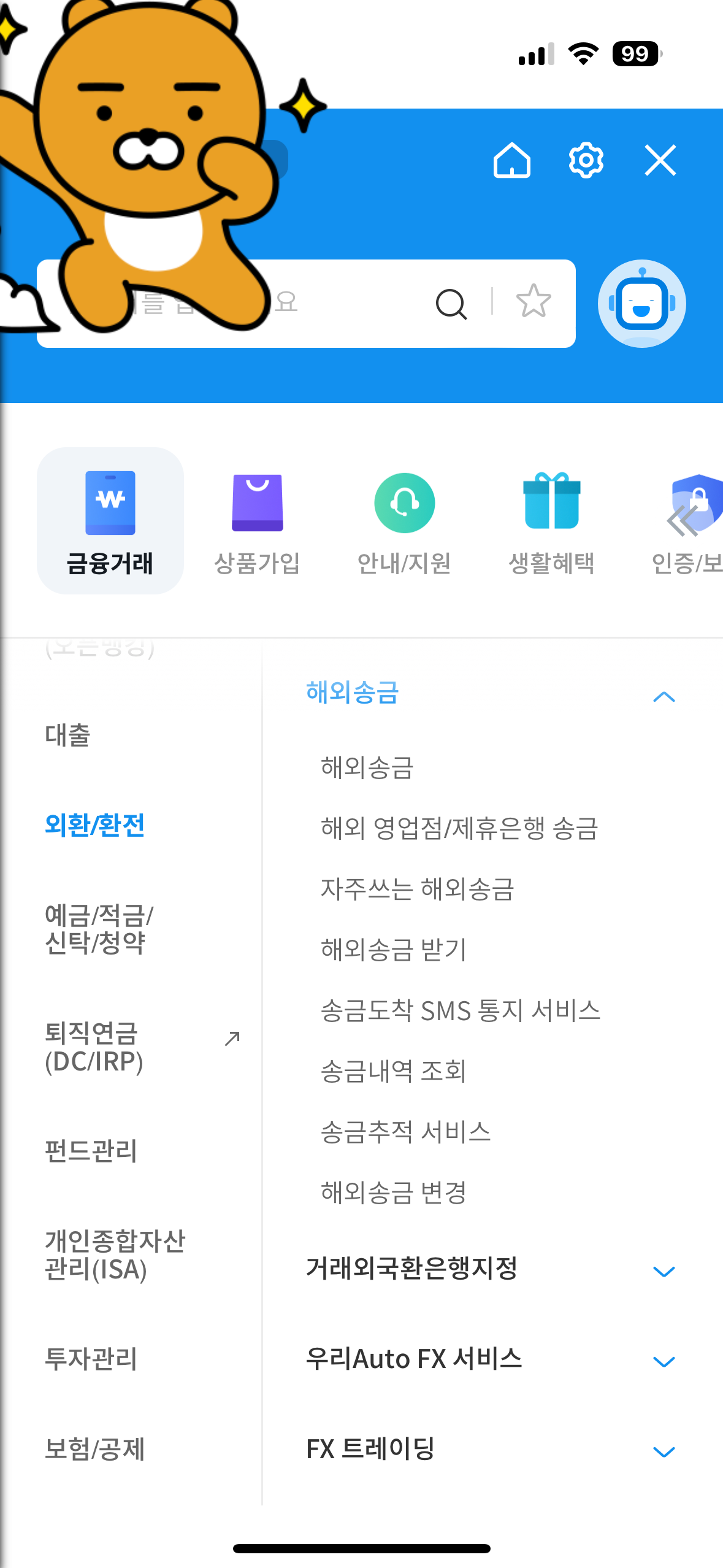 과정은 이렇다. 우리은행 앱에서 메뉴에서 외환 해외송금 송금내역 조회를 확인한다.