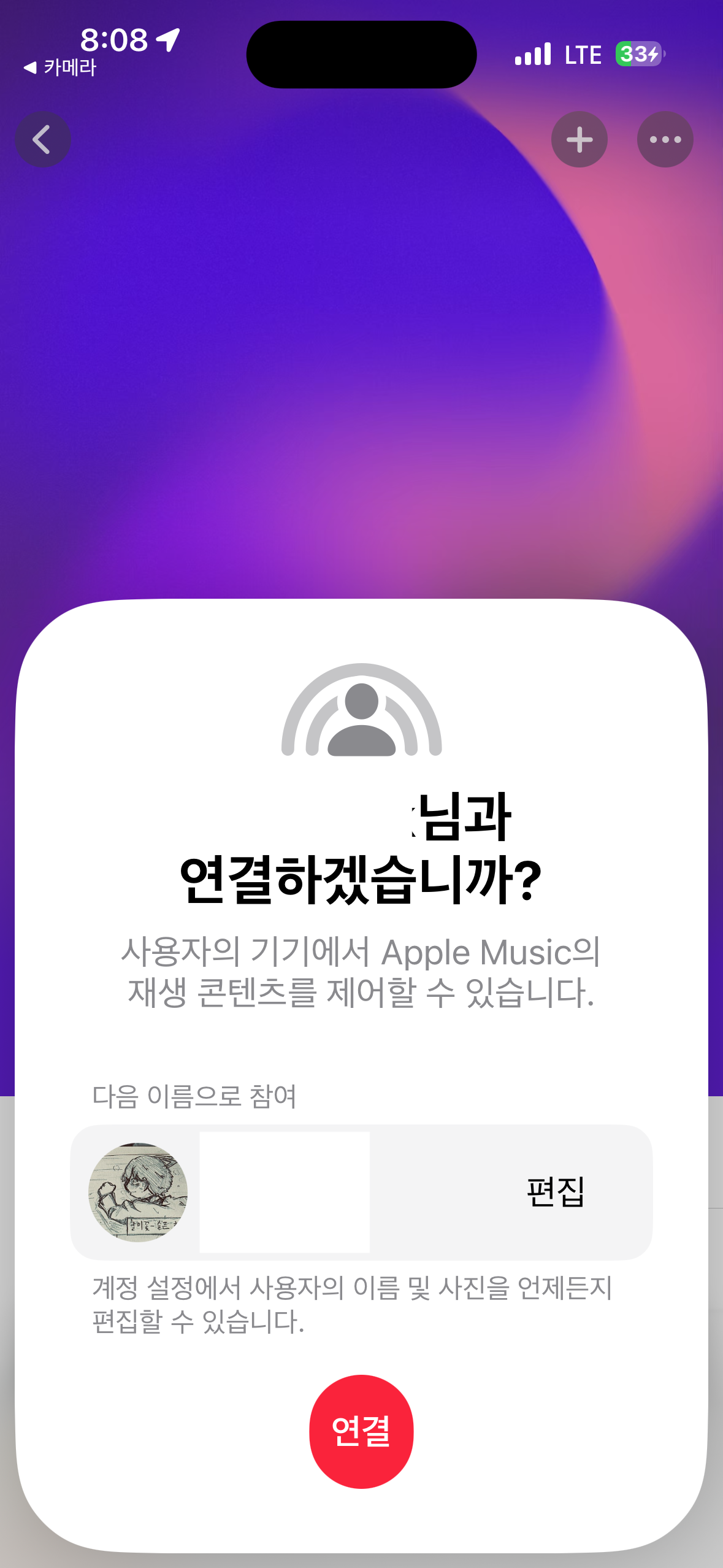 애플 카플레이로 우선 차와 아이폰을 연결한다. 이 부분은 지난번에 글을 적어두었다. )맨 아래 다시 링크를 넣어둠). 애플 뮤직을 실행하여 음악을 듣는데 오른쪽 위에 사람 모양 아이콘이 새로 생겼다. 이걸 누르면 뒷좌석이거나 동행한 사람들이 같이 애플뮤직을 제어할 수 있다는 안내 화면이 뜬다. 이때 아이폰쪽에서 카메라로 QR코드를 찍거나 하면 승인을 하게 되고 승인을 받은 쪽에서 함께 음악을 공유하여 재생하는 것이 가능해 졌다.