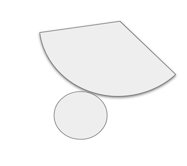 그러면 결국 넓이는 부채꼴 부분하고 원 부분의 넓이를 구해서 더하면 되요. 이건 중학교 1학년 과정의 끝에 부채꼴의 넓이를 배웁니다. 이때 부채꼴의 넓이를 원래 각도를 알아야 계산을 할 수 있는거죠. 각도를 아는 경우 부채꼴의 넓이는