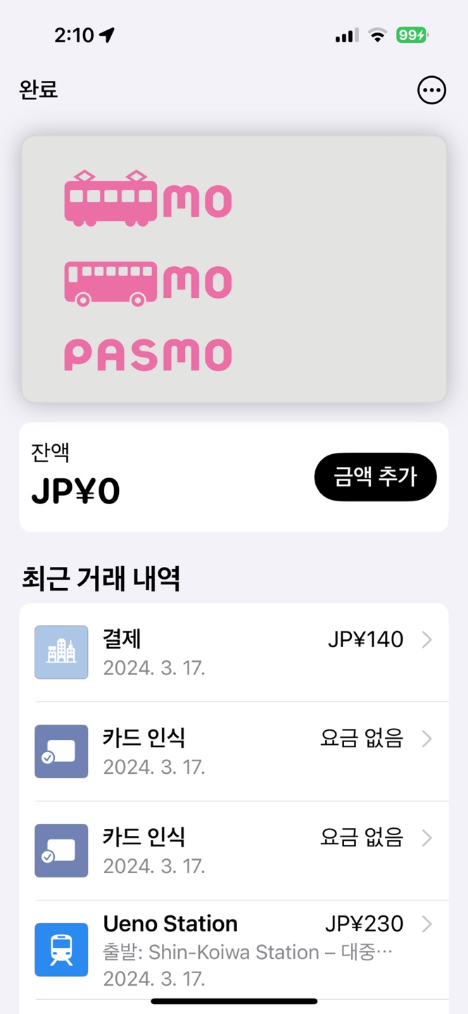 2. 현대카드 비자카드 계열은 아이폰 애플페이에서 충전 안됩니다. 그런데 이것도 고민하지 마시고 그냥 도쿄 현지 지하철역에서 현금으로 충전하세요. 충전 기계는 모든 지하철역에 다 있고 심지어 한국어도 다 제공합니다. 충천메뉴로 가서 아이폰 대라고하면 딱대고 ㅎㅎ 현금넣고 충전하면 되요. 한국어로 나오니까. 그냥 쉬워요. 환율도 낮고 카드 수수료도 없으니 이 방법이 제일 유리합니다.
