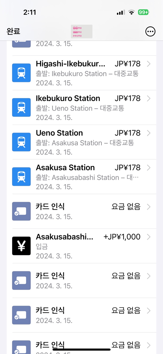 3. 일본 지하철은 JR이냐 아니냐에 따라서 갈아탈때 패스가 다르잖아요 1일권 뭔권 사도 JR이냐 아니냐에 따라 매우 불편한데 그냥 이거 파스모 하나면 되요 갈아탈때도 최종적으로 내릴 때 아이폰 갖다대면 그걸로 요금이 청구됩니다. 다만 지하찰로 하루에 3군데 이상간다.. 그러면 좀 비싸요. 그냥 두 군데 다녀온다 그럼 파스모가 살짝 편하고 살짝 비싸요. 물가가 먹는건 다 저렴한데 교통비가 좀 비싼 편이에요. 자주 왔다갔다 할거면 파스모나 스이카 필요없고 그냥 n일권 구매하는걸 추천드립니다.
