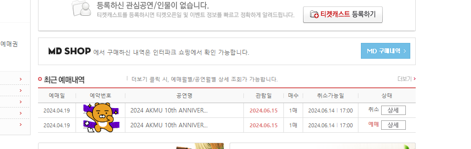 그리고 지금 현실은 그 좌석은 취소하고 우측 구역으로 한장만 남겨놓았다. 한장은 구매 다음날 취소했더니 취소 수수료가 2천원이 ㅠㅠ 아오 이 나쁜 인터파크 ...