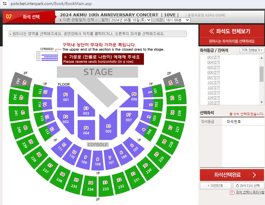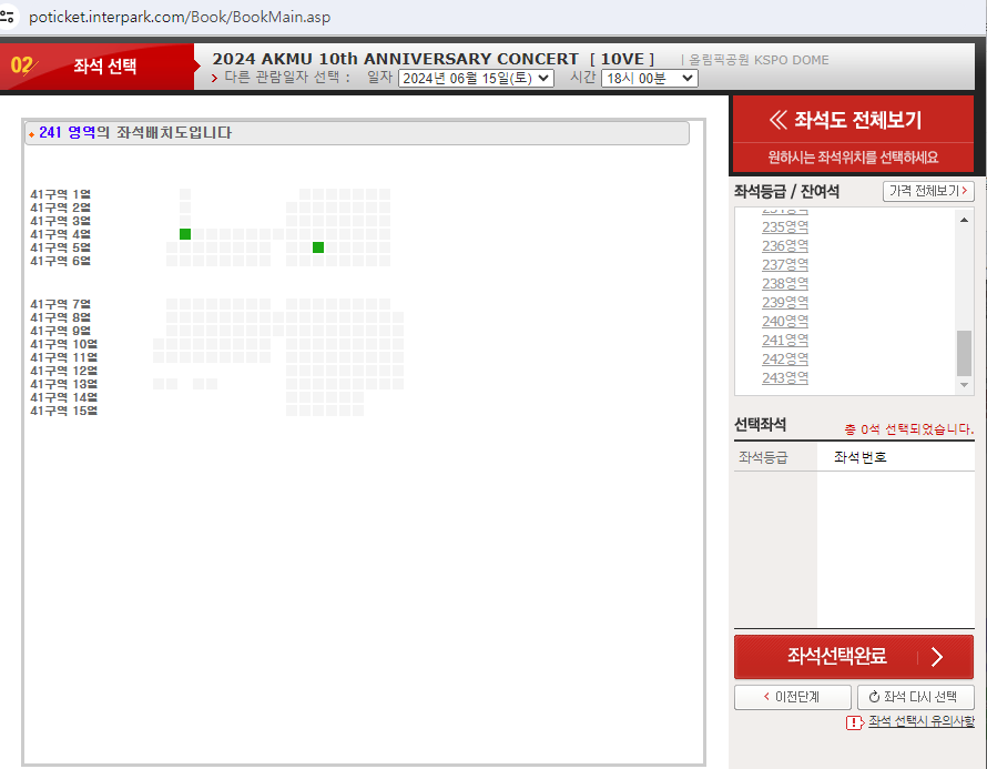 무슨 이런 예매시스템이 다 있냐. 그리고 이걸 그렇게 하기로 했다고 대놓고 적어놨다. 그럼 좌석을 어케 찾지?? 싶은데...이런식으로 오른쪽에서 계속 좌석 구역을 선택하여 빈좌석을 찾는 방법밖에 없다. 우와..진짜 불편하다. 이렇게 해놓고 인터파크는 예매 수수료를 받는다는 거지??